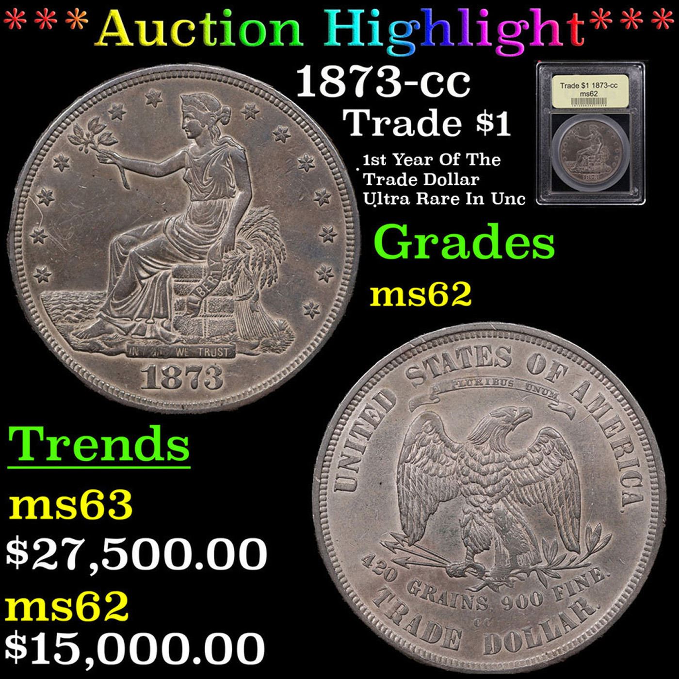 ***Auction Highlight*** 1873-cc Trade Dollar $1 Graded Select Unc By USCG.