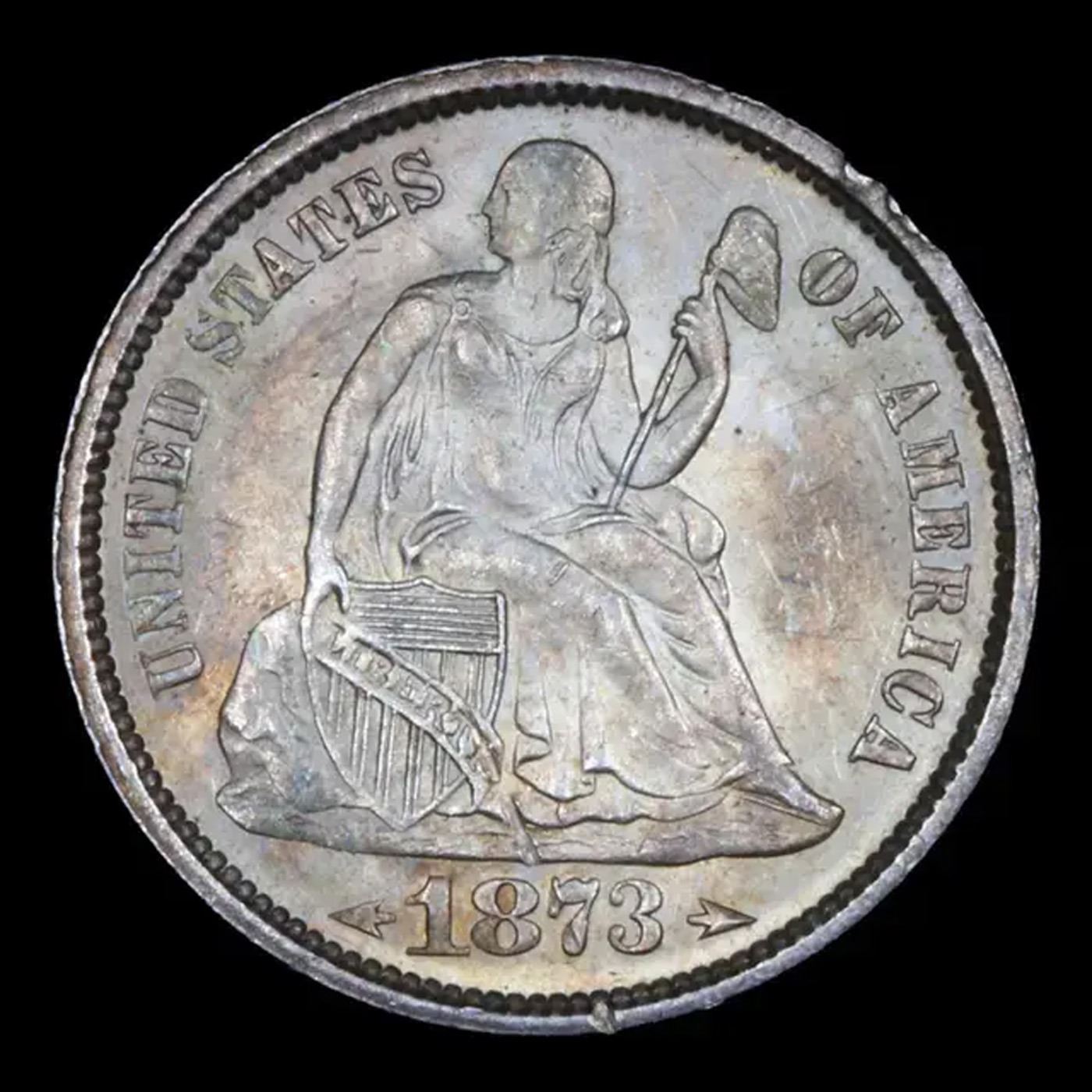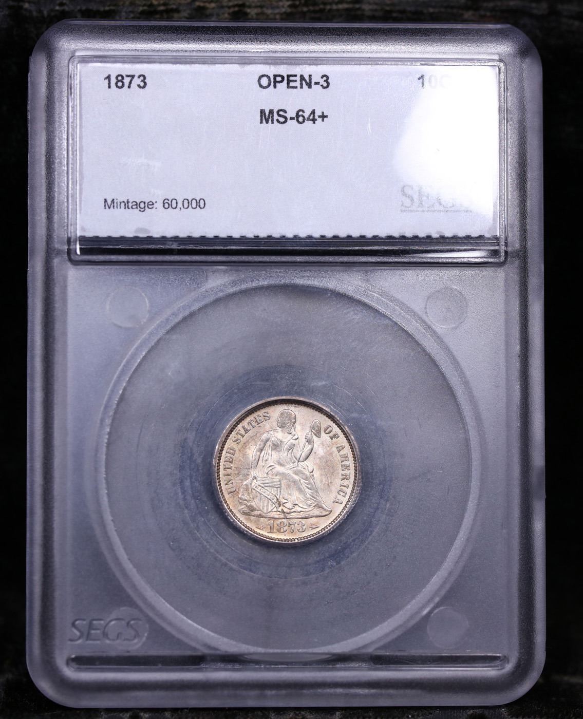 ***Auction Highlight*** 1873-p Open 3 Seated Liberty Dime 10c Graded ms64+ By SEGS. A Key Date's Pick, Bid to Win, Don't let it get Away Coin