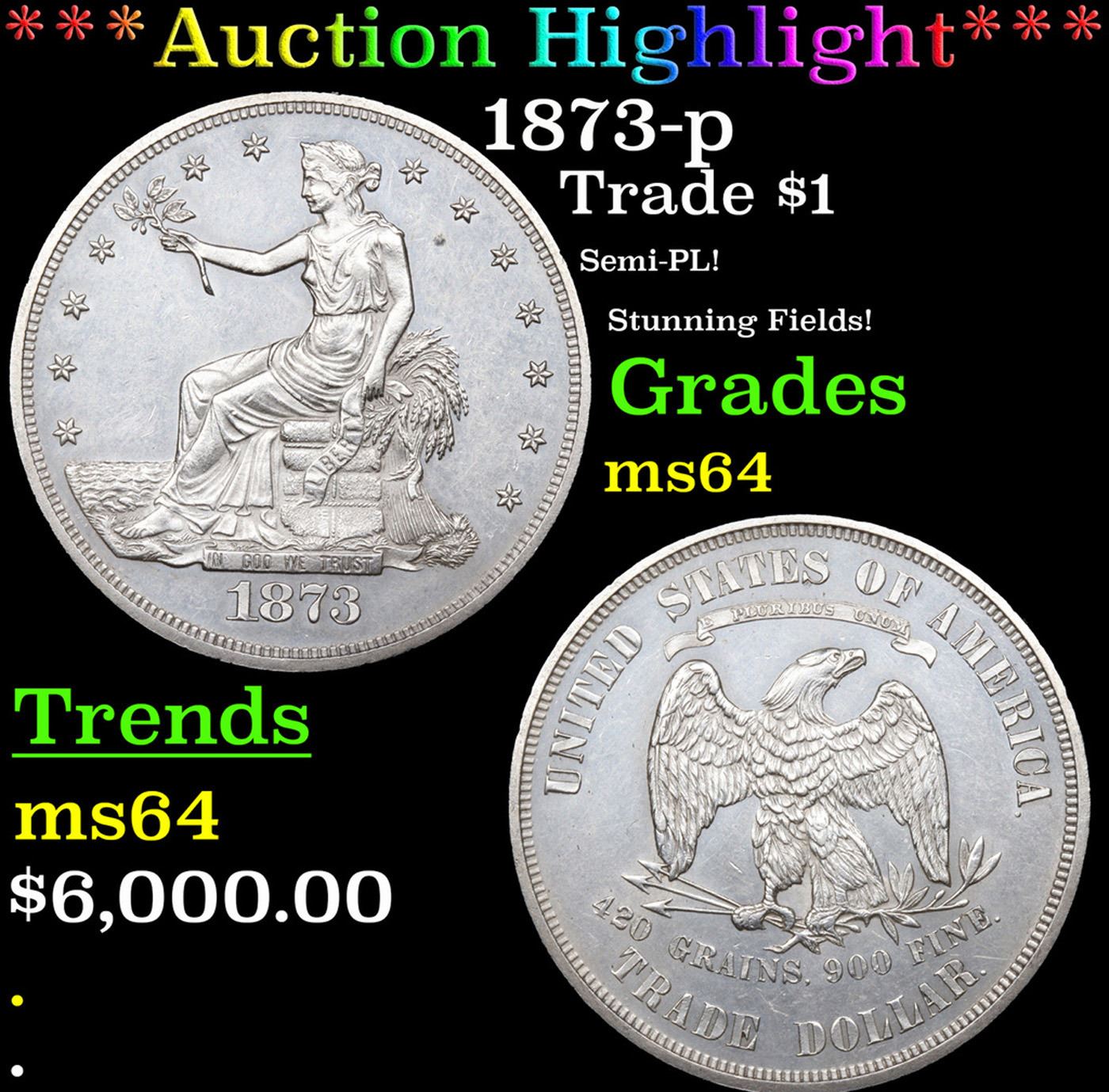 ***Auction Highlight*** 1873-p Trade Dollar $1 Graded ms64 By SEGS. A Key Date's Pick, Bid to Win, Don't let it get Away Coin
