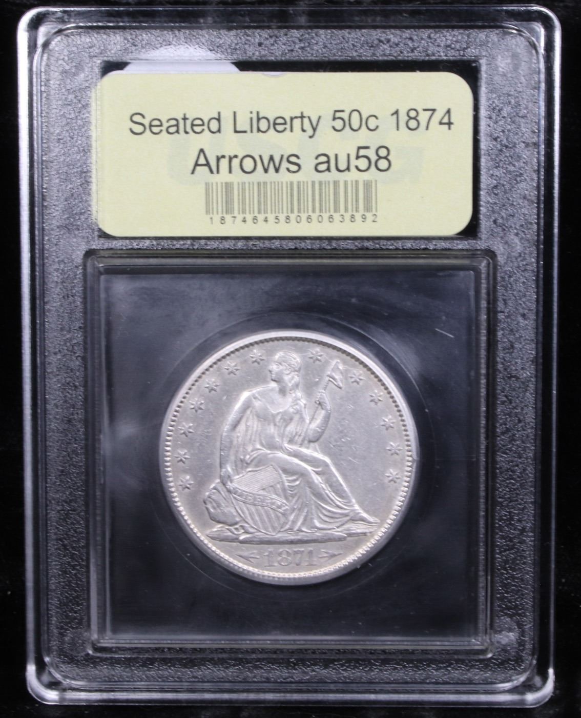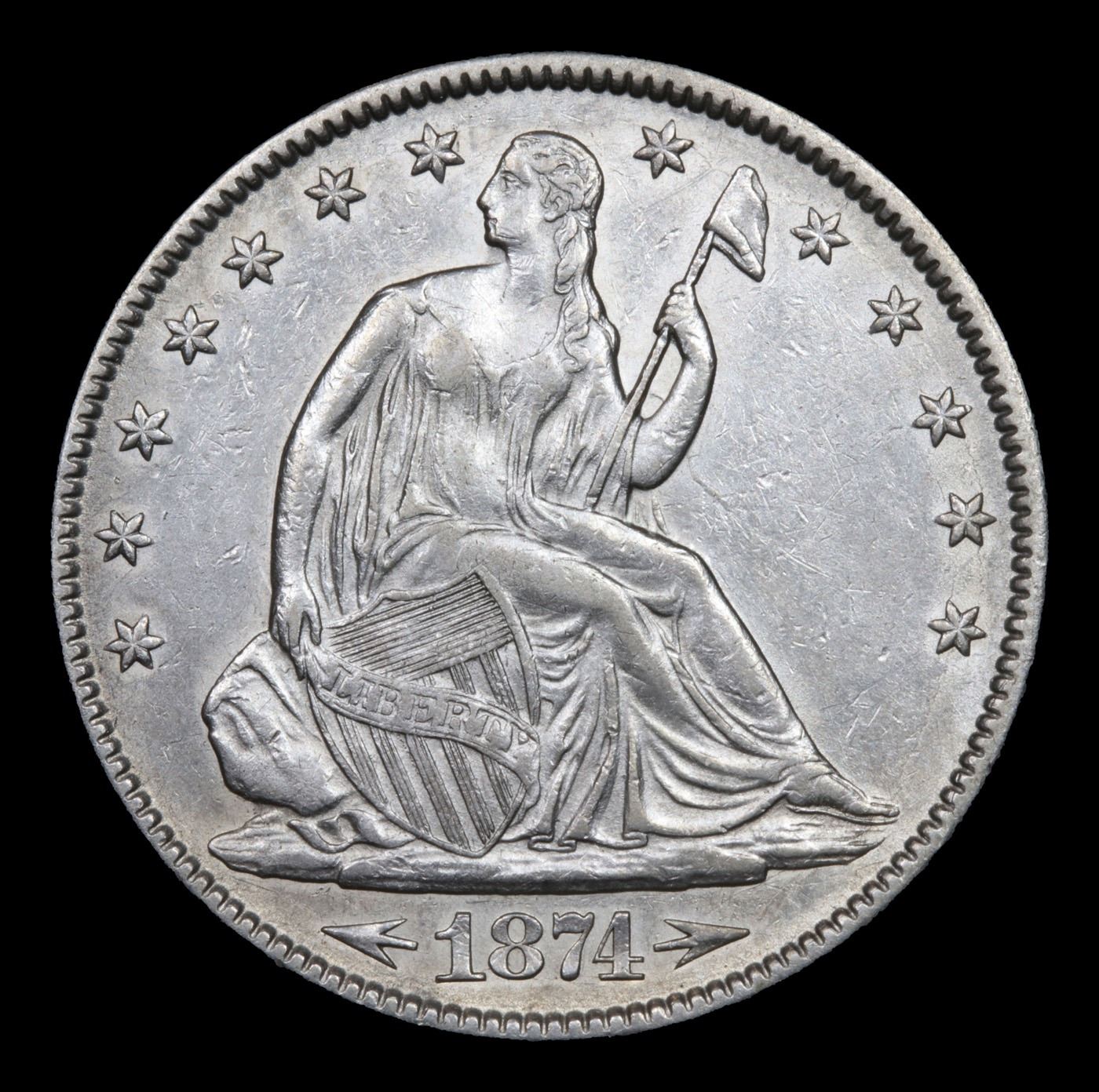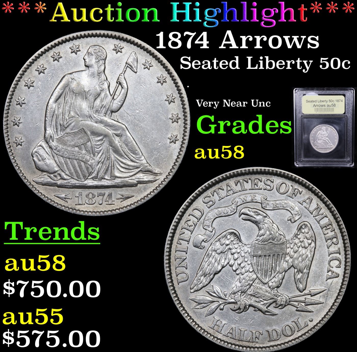 ***Auction Highlight*** 1874 Arrows Seated Half Dollar 50c Graded Choice AU/BU Slider By USCG.