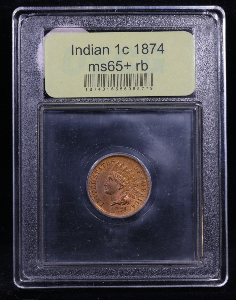 ***Auction Highlight*** 1874 Indian Cent 1c Graded Gem+ Unc RB By USCG. According to Jaime Hernandez from PCGS, The 1874 Indian Cent is somewhat of a scarcer issue. Semi key date that in circulated grades carries a premium over the type coins in the series. With an original mintage of over 14.2 million; PCGS estimated that only 6000 survive in all grades. A Corey's Pick, Bid to Win Coin