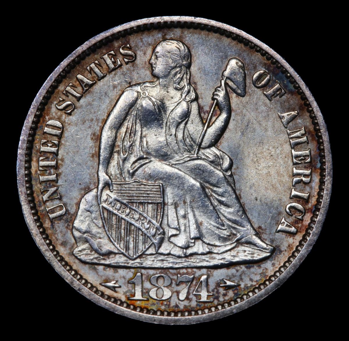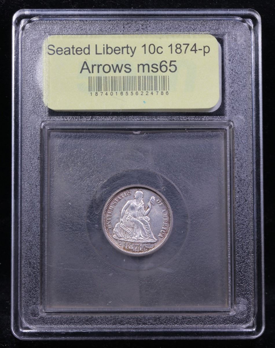 ***Auction Highlight*** 1874-p Arrows Seated Liberty Dime 10c Graded GEM Unc By USCG (fc)