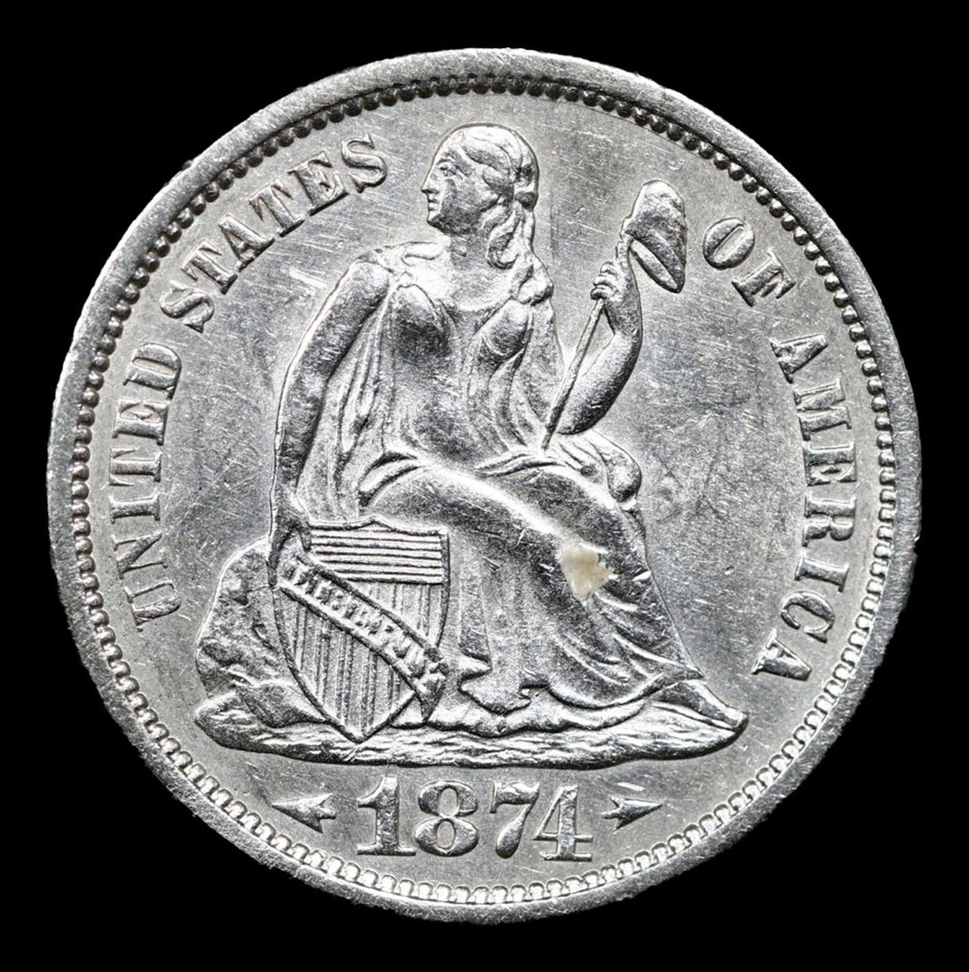 ***Auction Highlight*** 1874-p Seated Liberty Dime 10c Graded Select Unc By USCG.