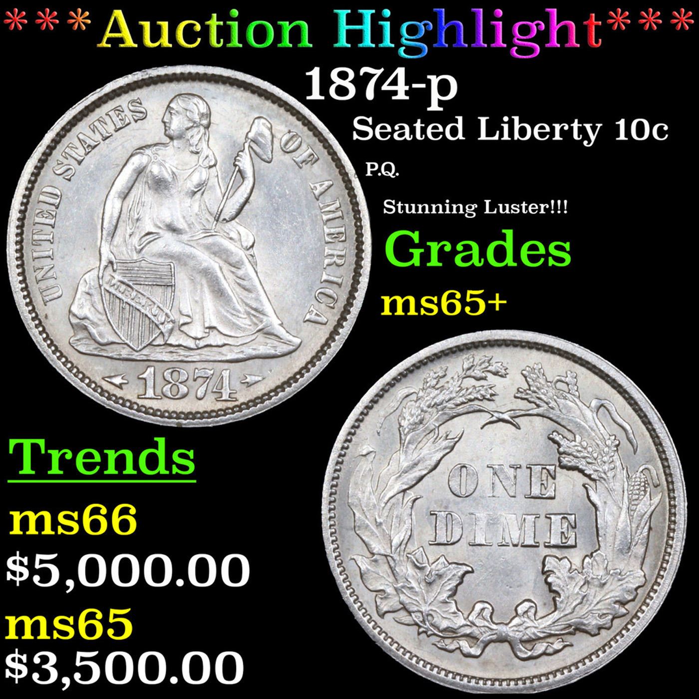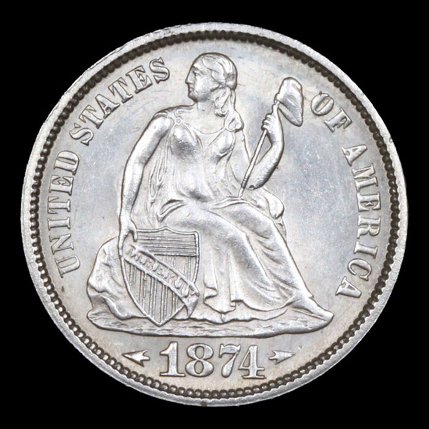 ***Auction Highlight*** 1874-p Seated Liberty Dime 10c Graded ms65+ By SEGS. A Key Date's Pick, Bid to Win, Don't let it get Away Coin