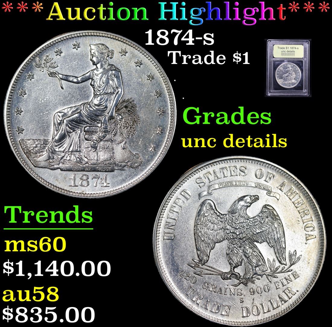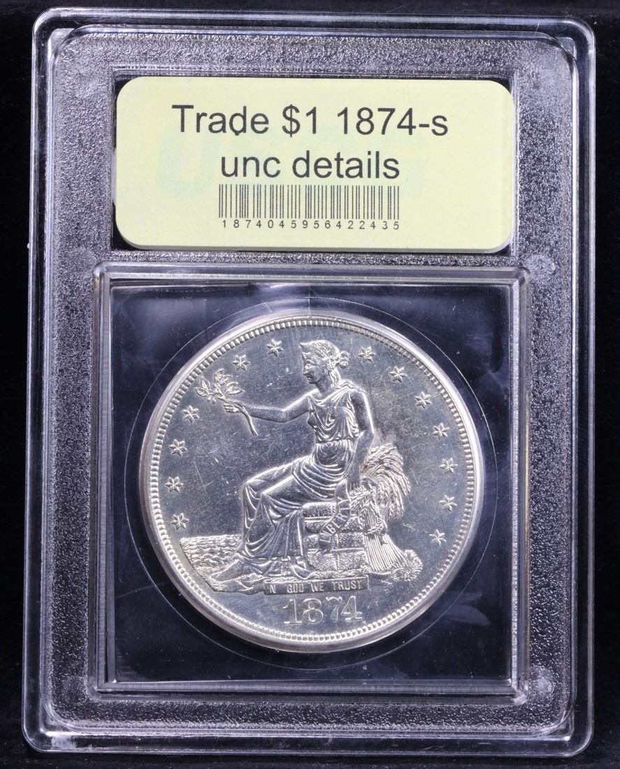 ***Auction Highlight*** 1874-s . . Trade Dollar $1 Graded Unc Details By USCG.