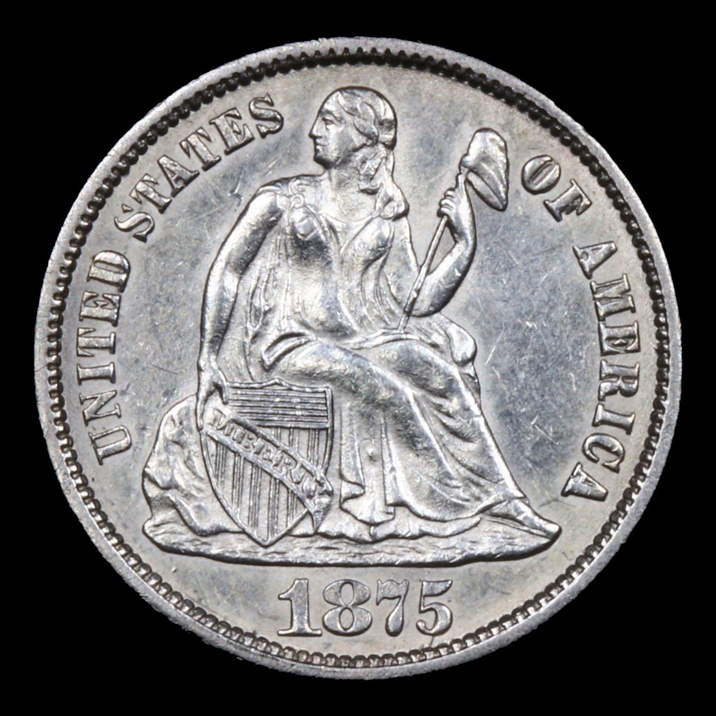 ***Auction Highlight*** 1875-cc Seated Liberty Dime Mintmark Below Bow 10c Graded ms64+ BY SEGS (fc)
