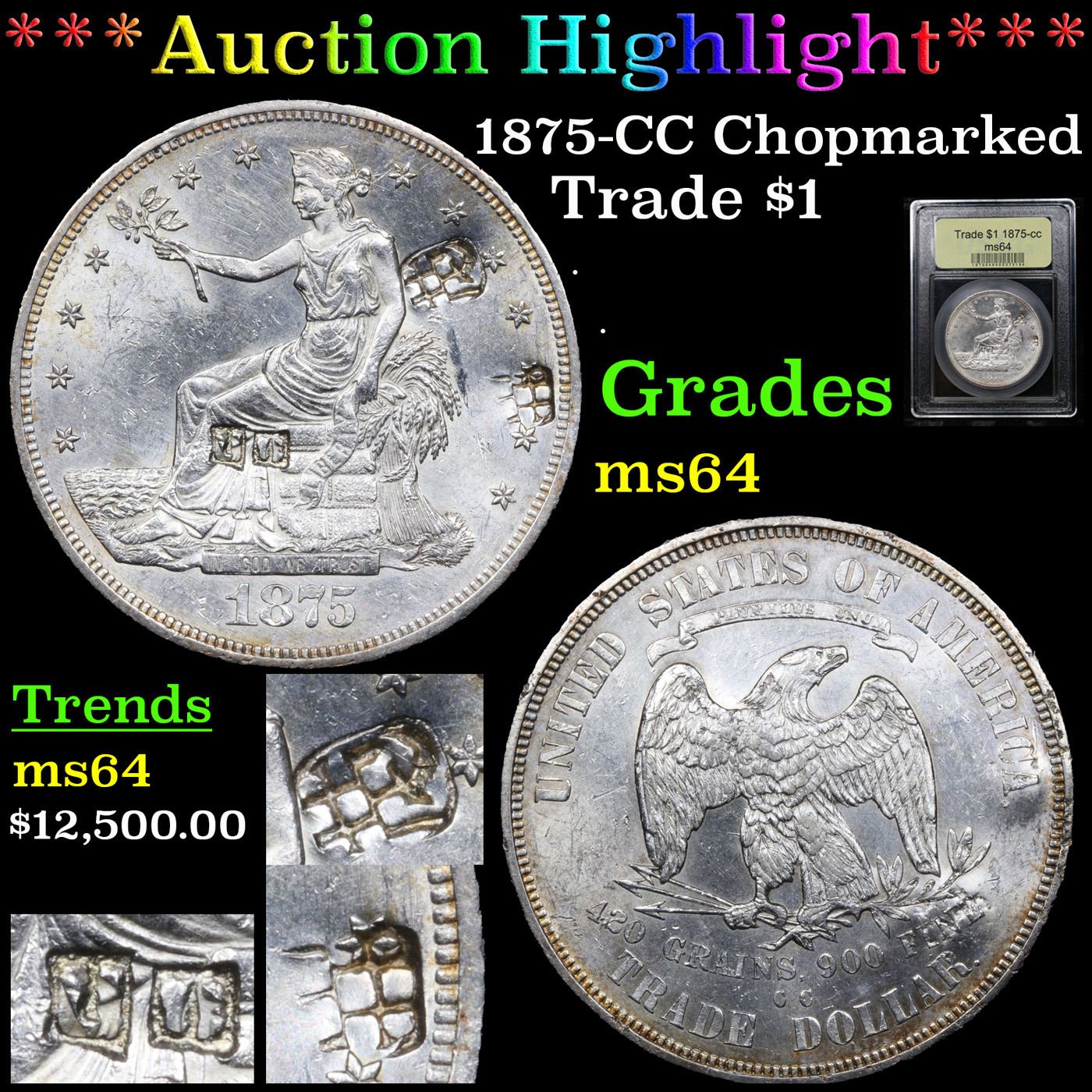***Auction Highlight*** 1875-cc Trade Dollar Chopmarked $1 Graded Choice Unc By USCG (fc)