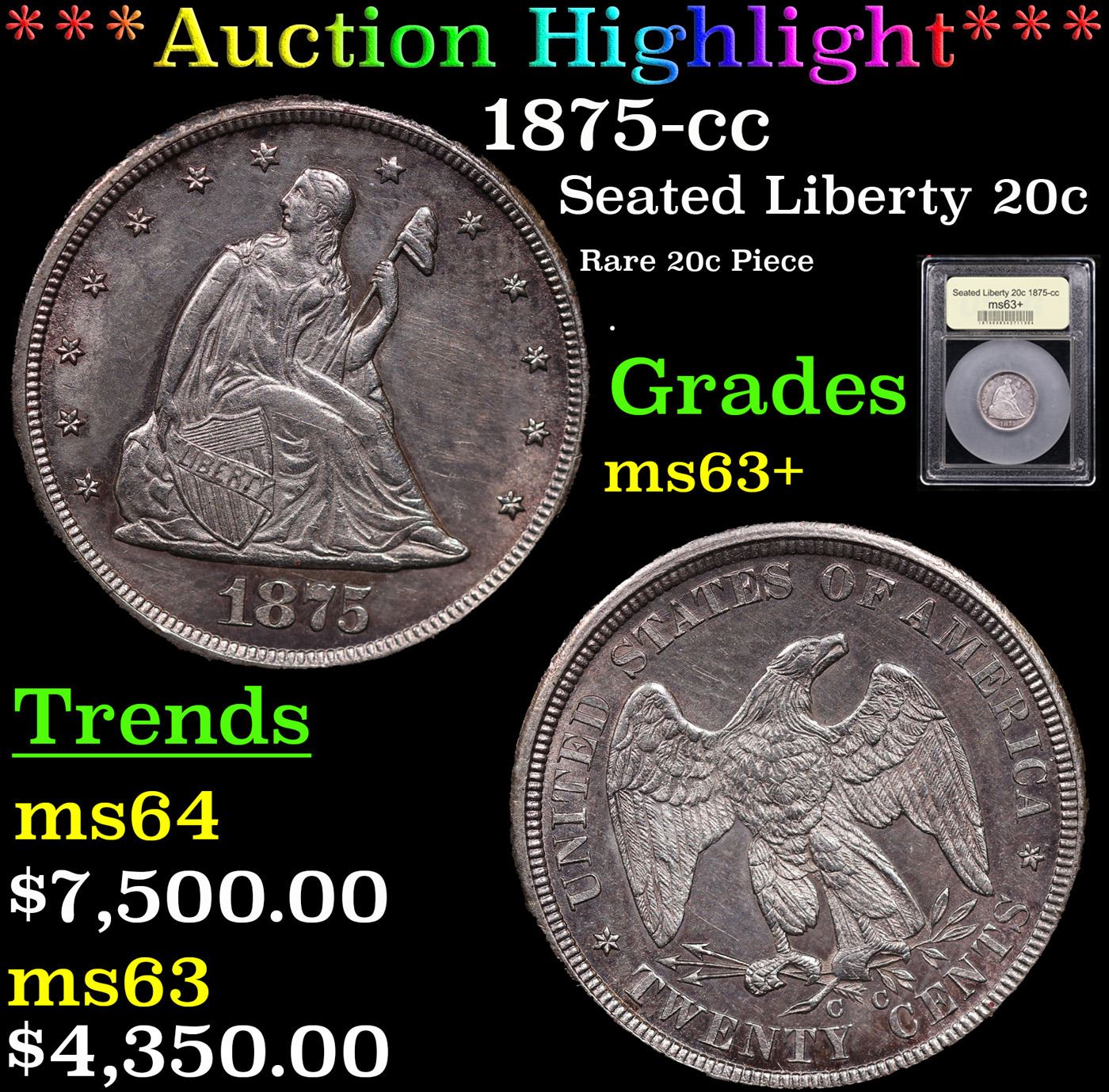 ***Auction Highlight*** 1875-cc Twenty Cent Piece 20c Graded Select+ Unc By USCG. A Corey's Pick, Bid to Win, Don't let it get Away Coin