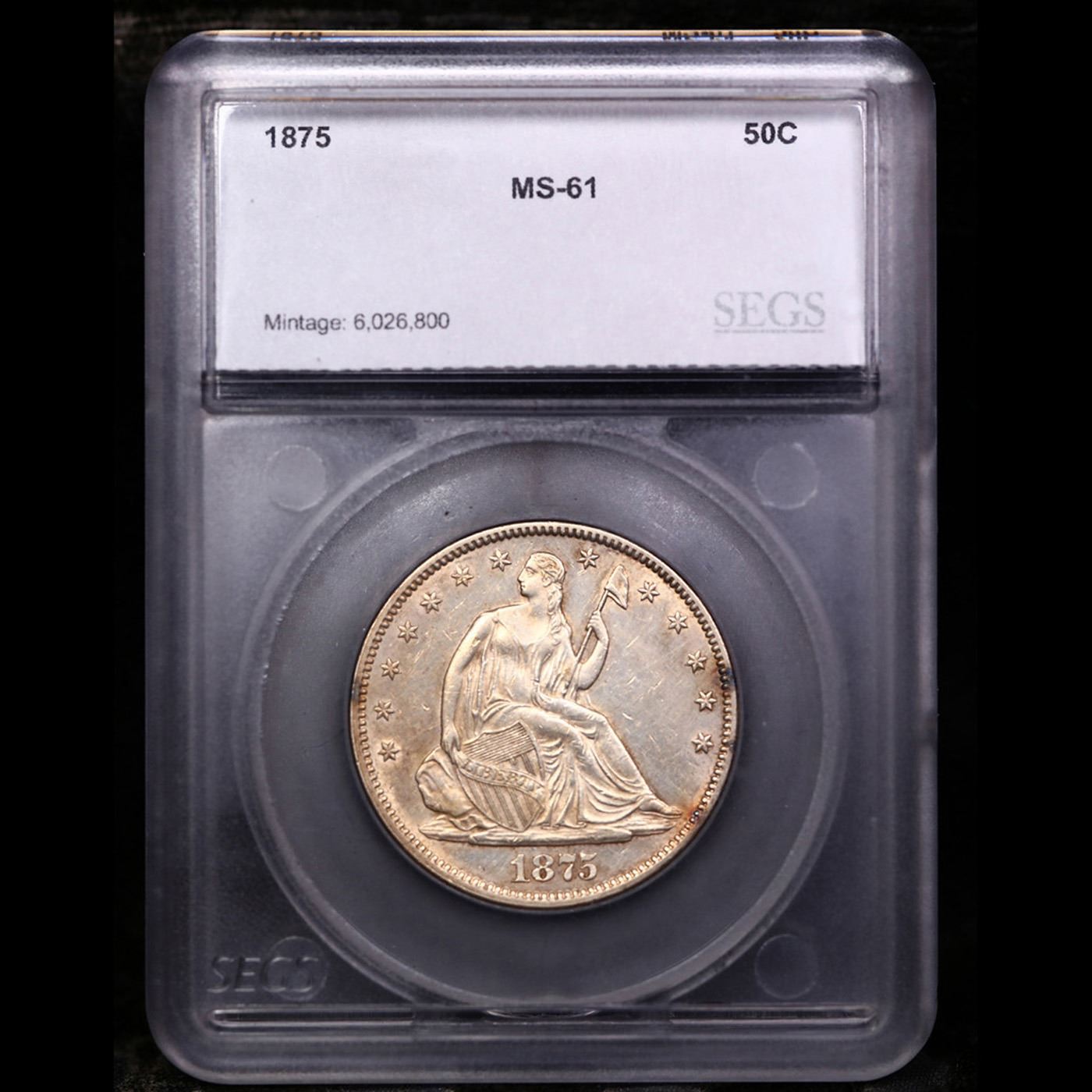 ***Auction Highlight*** 1875-p Seated Half Dollar 50c Graded ms61 BY SEGS. A Corey's Pick, Bid to Win, Don't let it get Away, you might not find its equal Coin