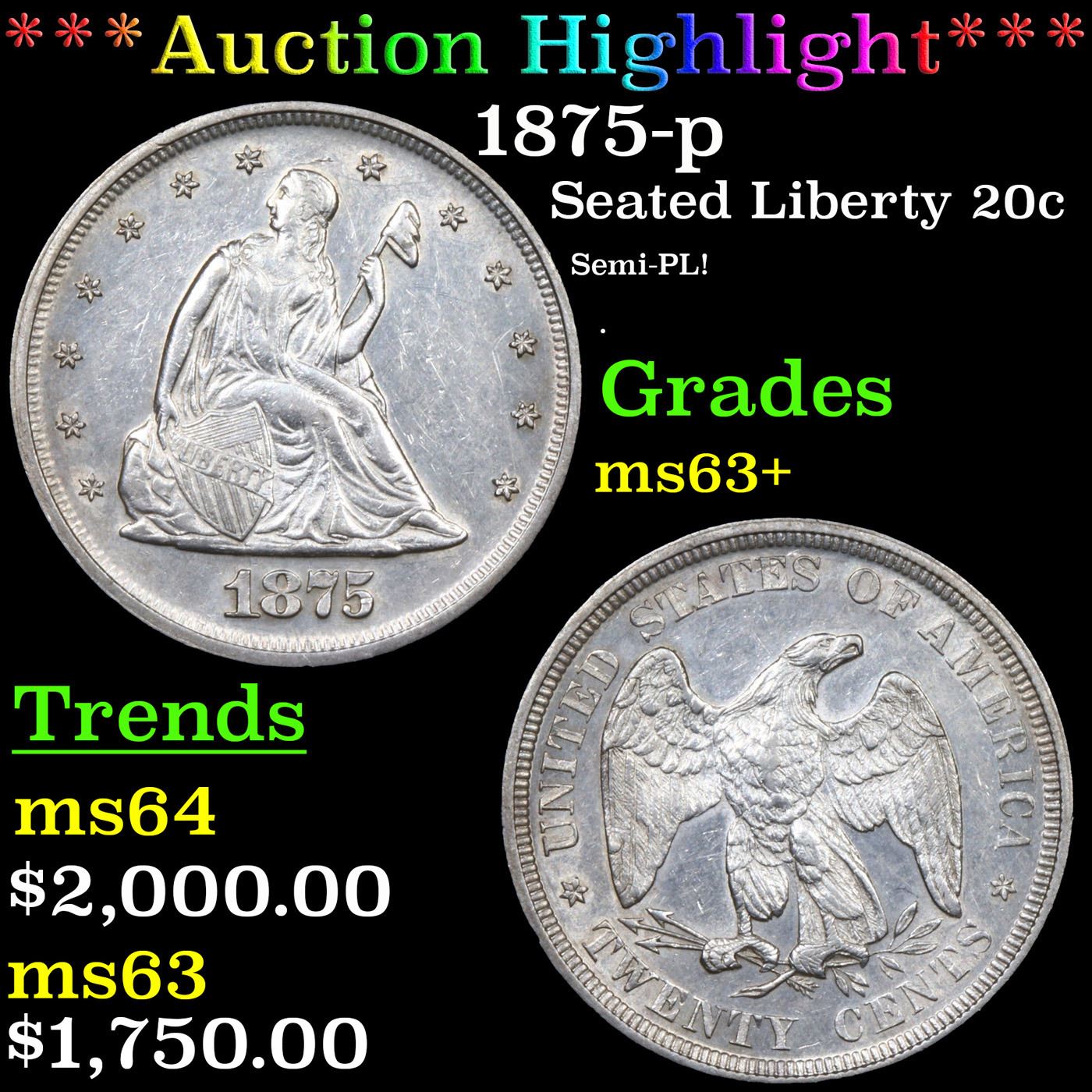 ***Auction Highlight*** 1875-p Twenty Cent Piece 20c Graded Select+ Unc BY USCG.