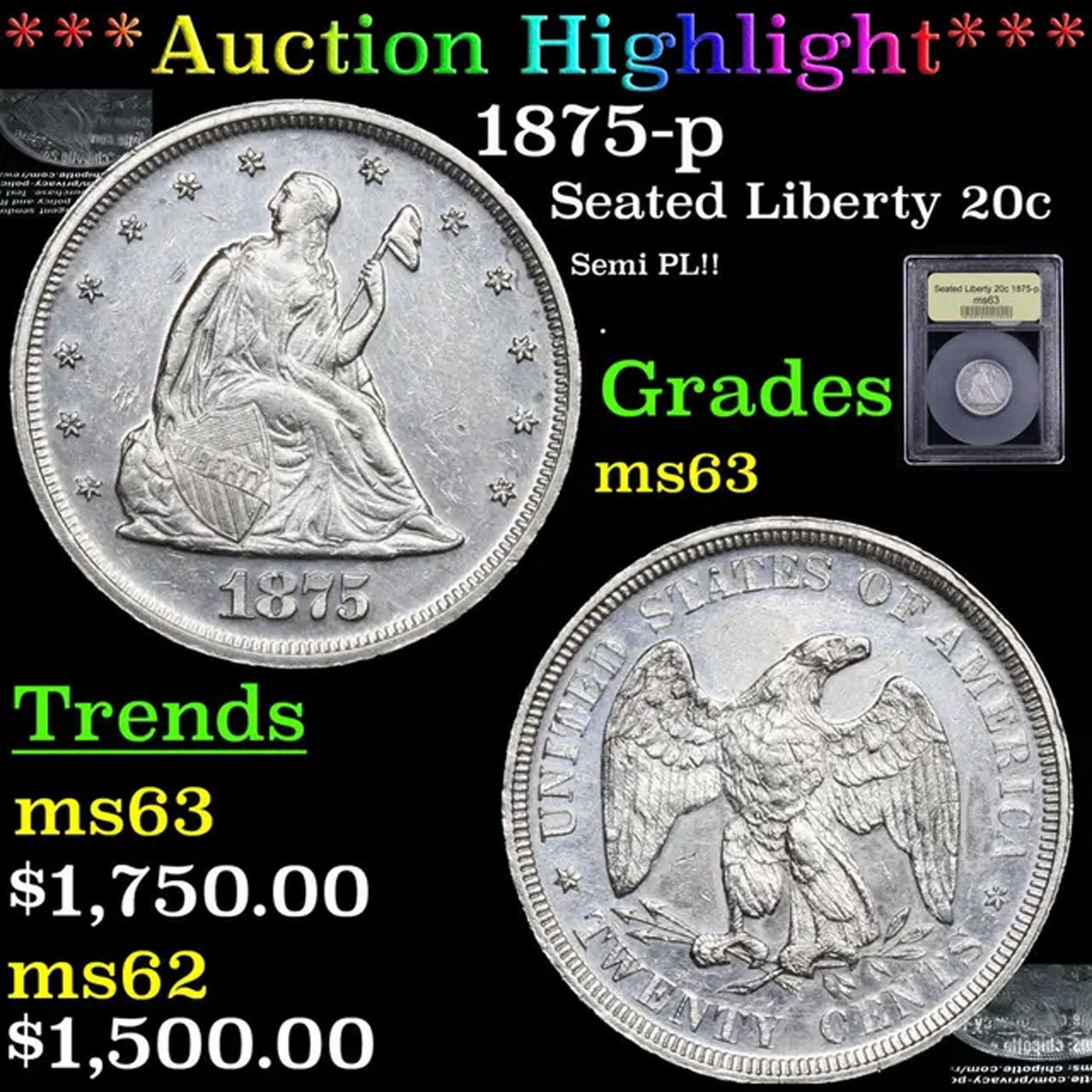 ***Auction Highlight*** 1875-p Twenty Cent Piece 20c Graded Select Unc BY USCG.