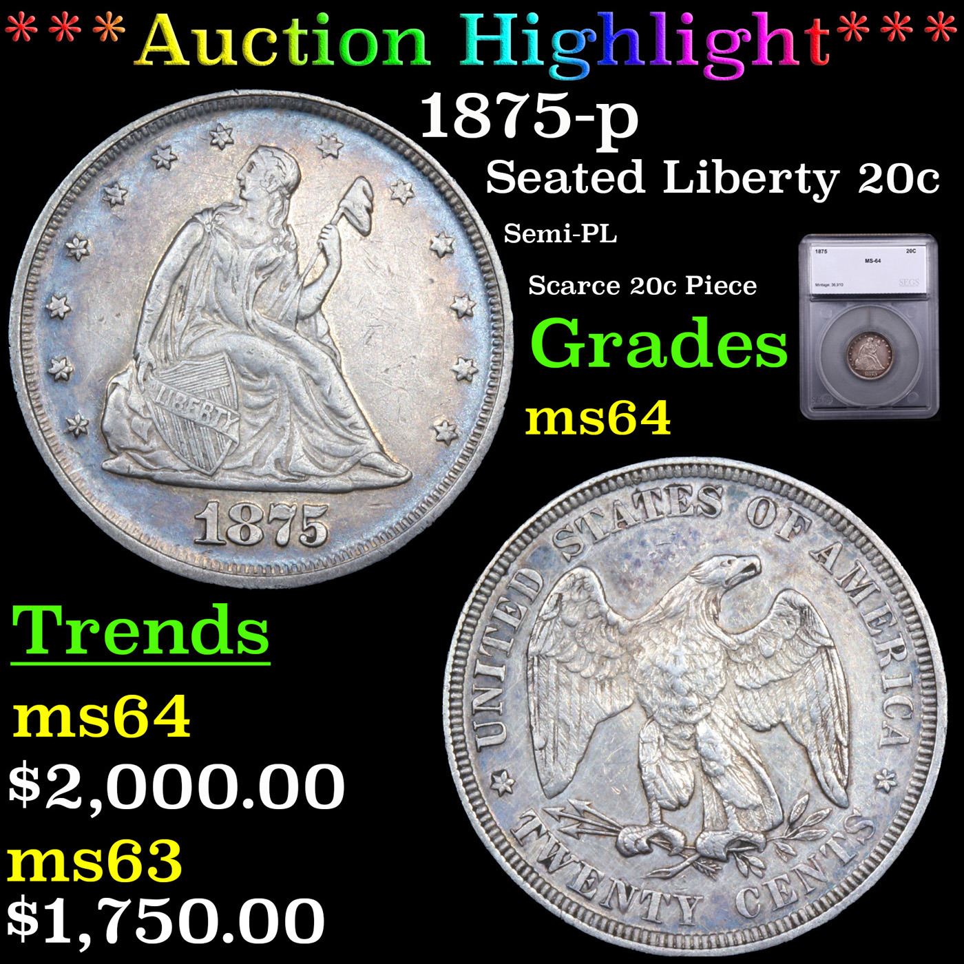 ***Auction Highlight*** 1875-p Twenty Cent Piece 20c Graded ms64 By SEGS.