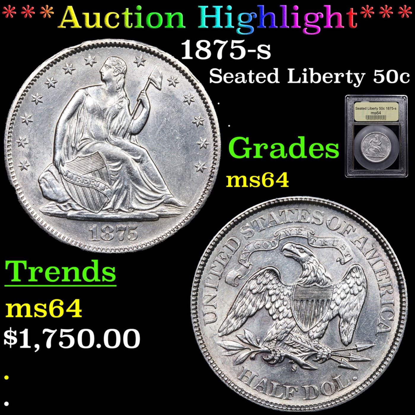 ***Auction Highlight*** 1875-s Seated Half Dollar 50c Graded Choice Unc BY USCG.