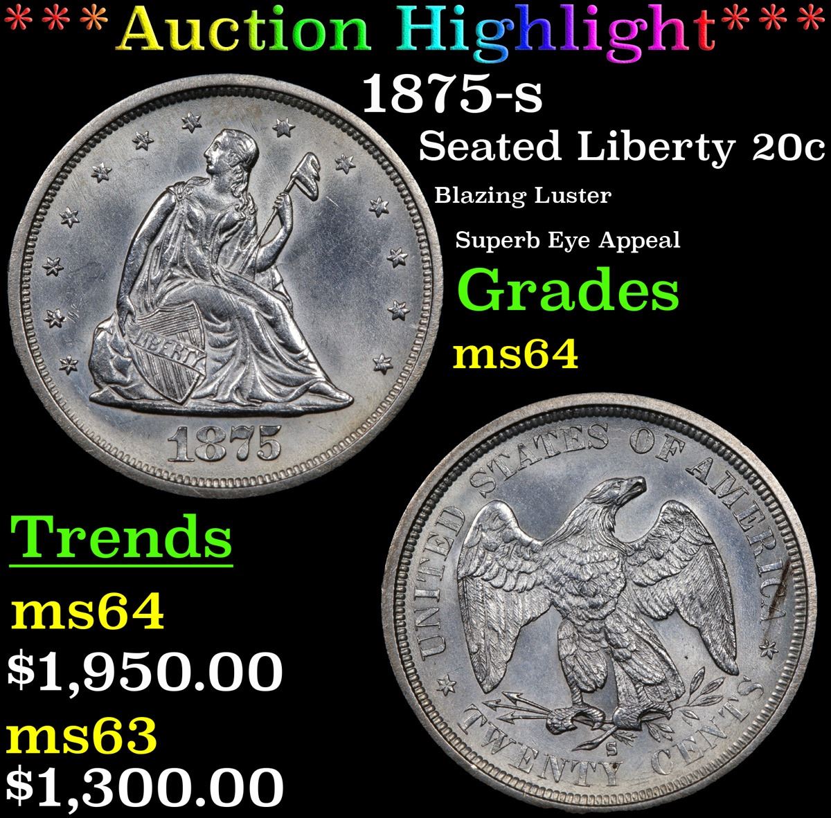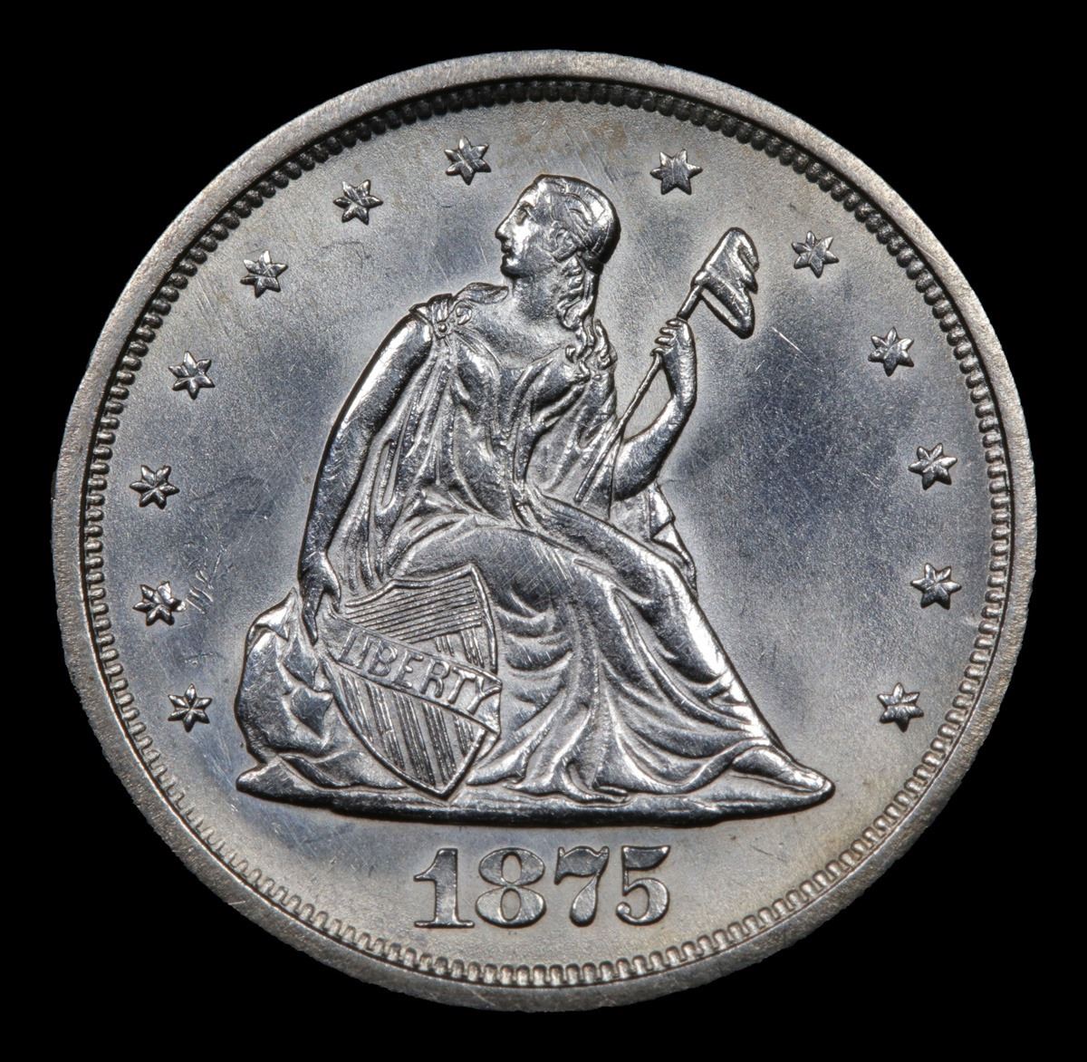 ***Auction Highlight*** 1875-s Twenty Cent Piece 20c Graded Choice Unc By USCG. A Corey's Pick, Bid to Win, Don't let it get Away, you might not find its equal Coin