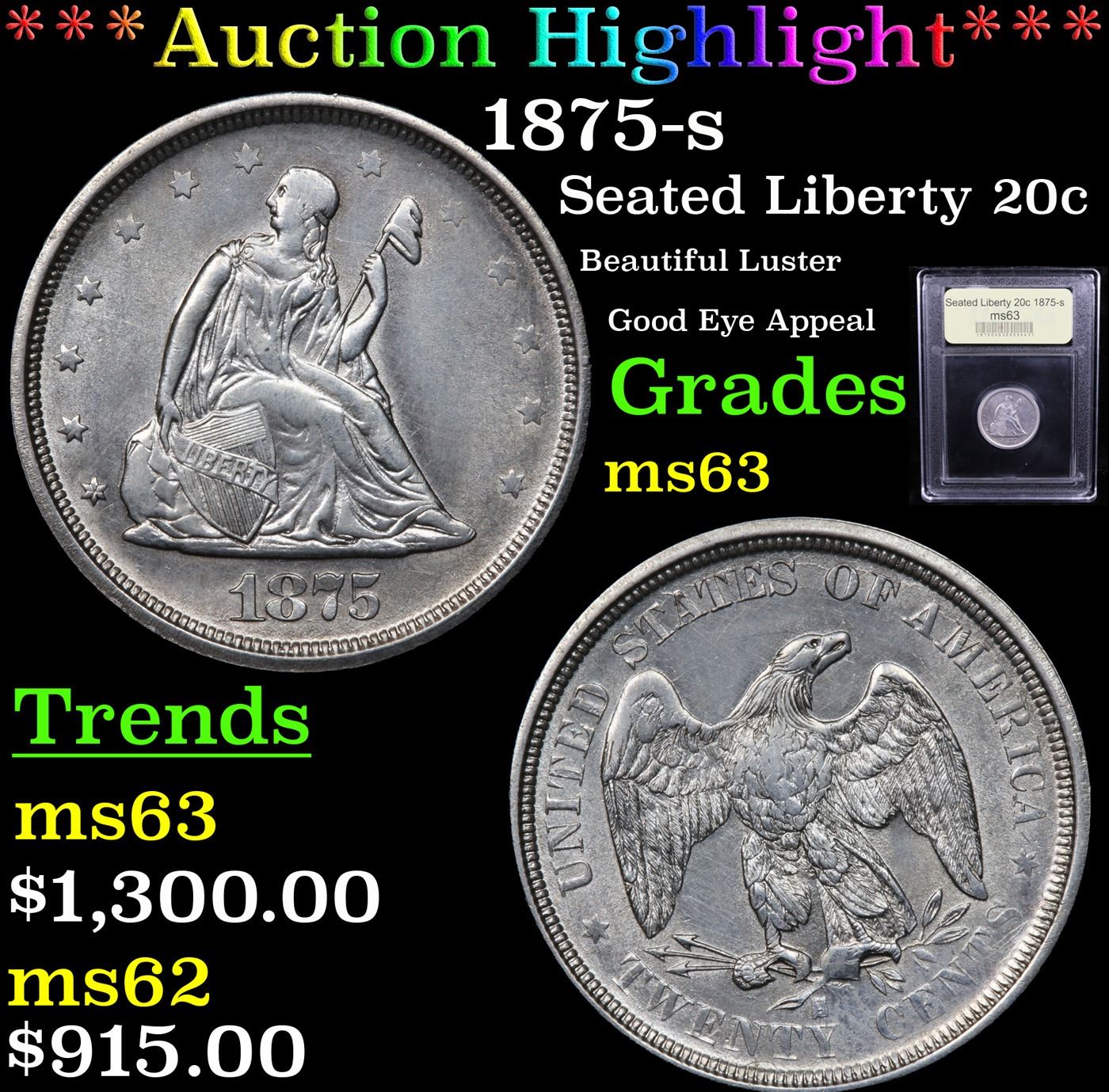 ***Auction Highlight*** 1875-s Twenty Cent Piece 20c Graded Select Unc By USCG. A Corey's Pick, Bid to Win, Don't let it get Away Coin