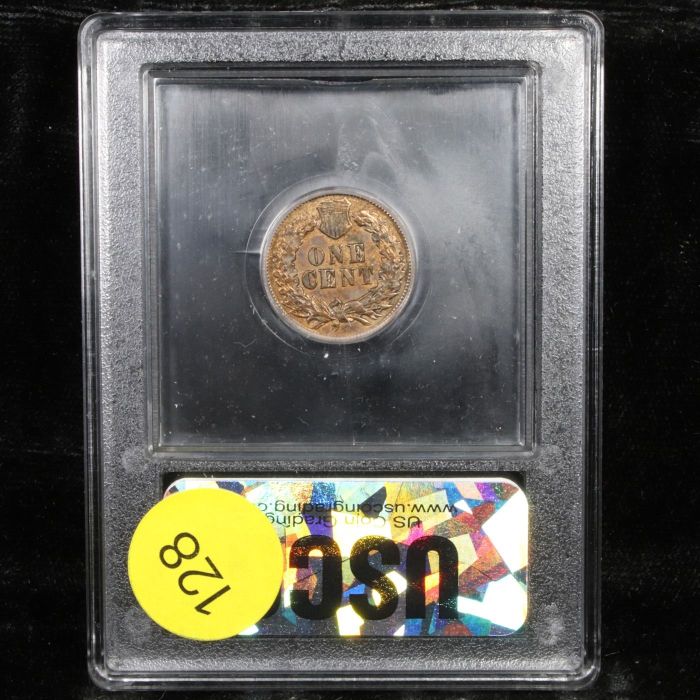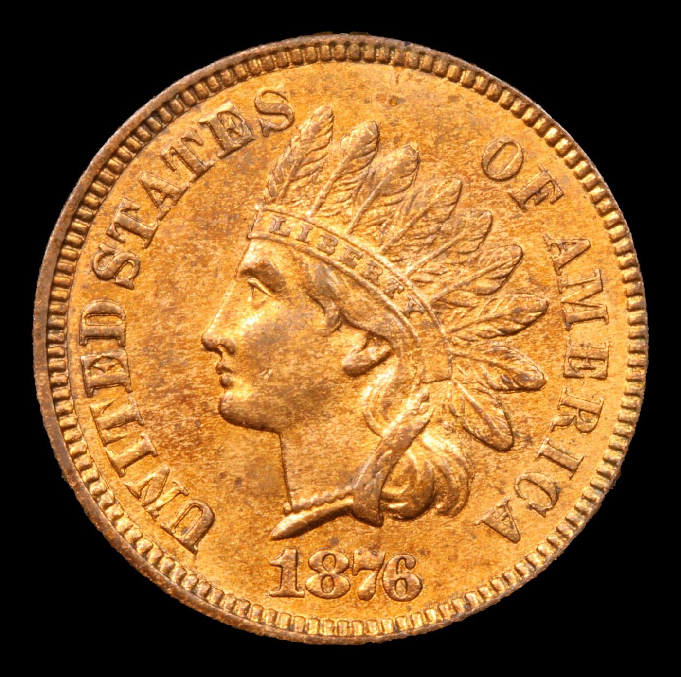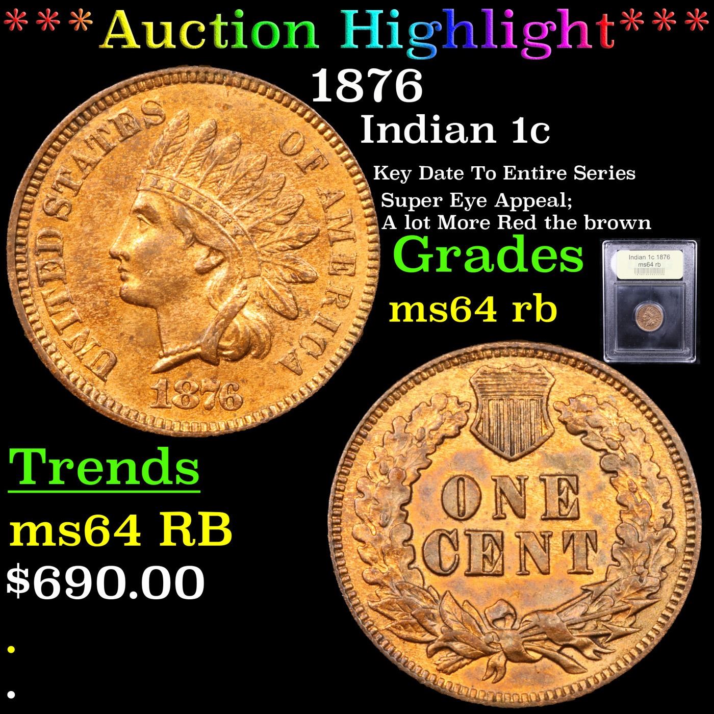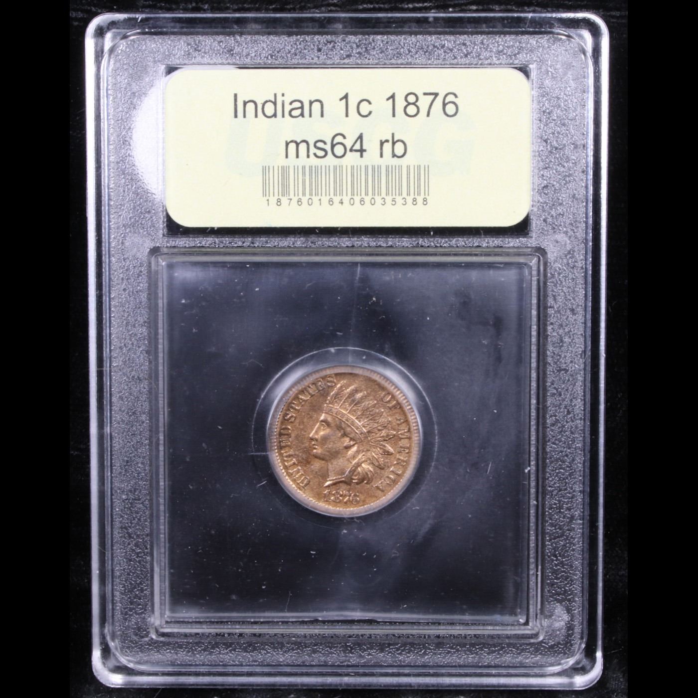 ***Auction Highlight*** 1876 Indian Cent 1c Graded Choice Unc RB BY USCG. very scarce date. PCGS estimates that only 5000 survive in all grades A lovely premium Near Gem that combines a, medium orange obverse with an evenly toned, rose-brown and autumn orange reverse. Both sides are uniformly struck with a smooth, inviting, satiny texture. Conditionally rare for this underrated semi-key date circulation strike issue among early date bronze Indian cents. A Corey's Pick, Bid to Win Coin