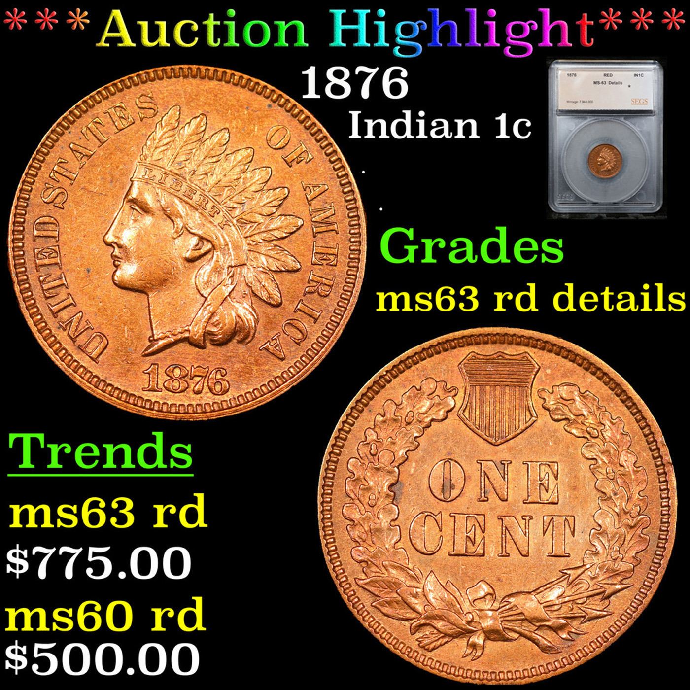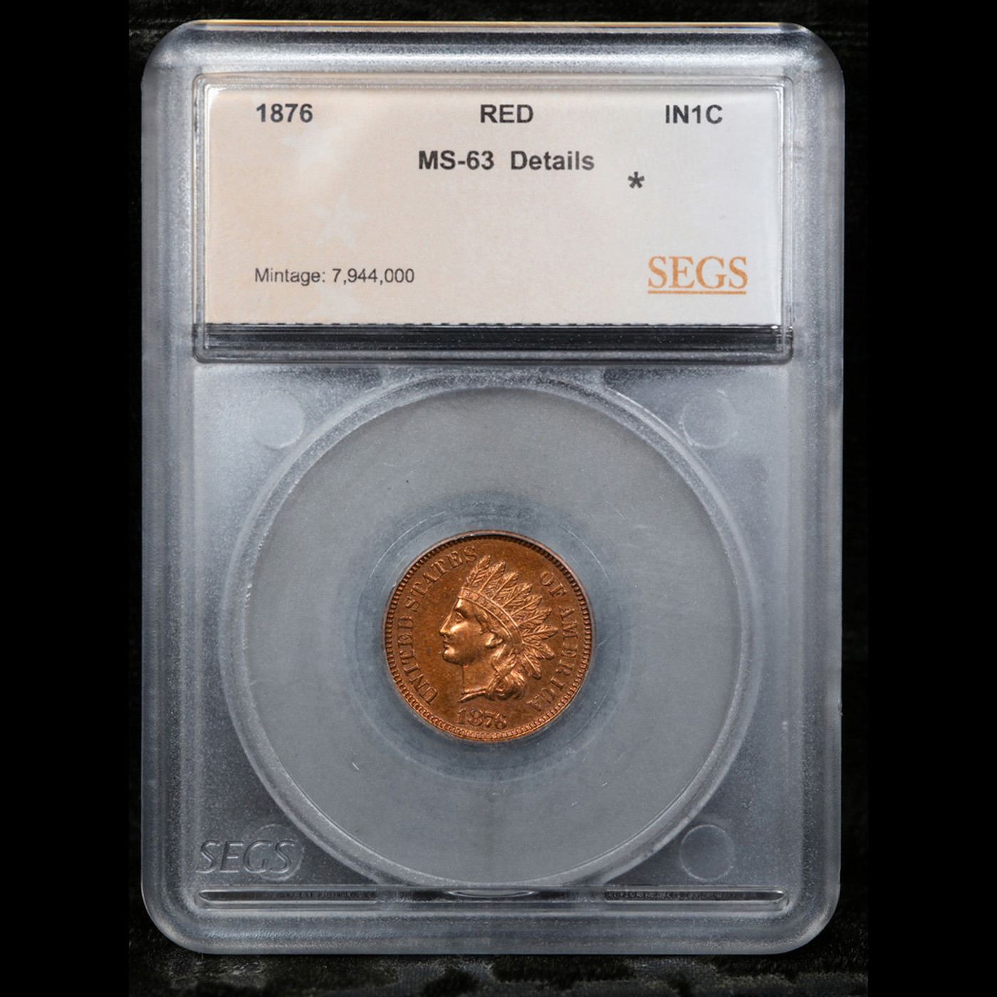***Auction Highlight*** 1876 Indian Cent 1c Graded ms63 rd details By SEGS. very scarce date. PCGS estimates that only 5000 survive in all grades