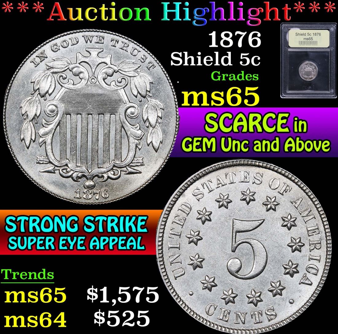 ***Auction Highlight*** 1876 . . Shield Nickel 5c Graded GEM Unc By USCG.