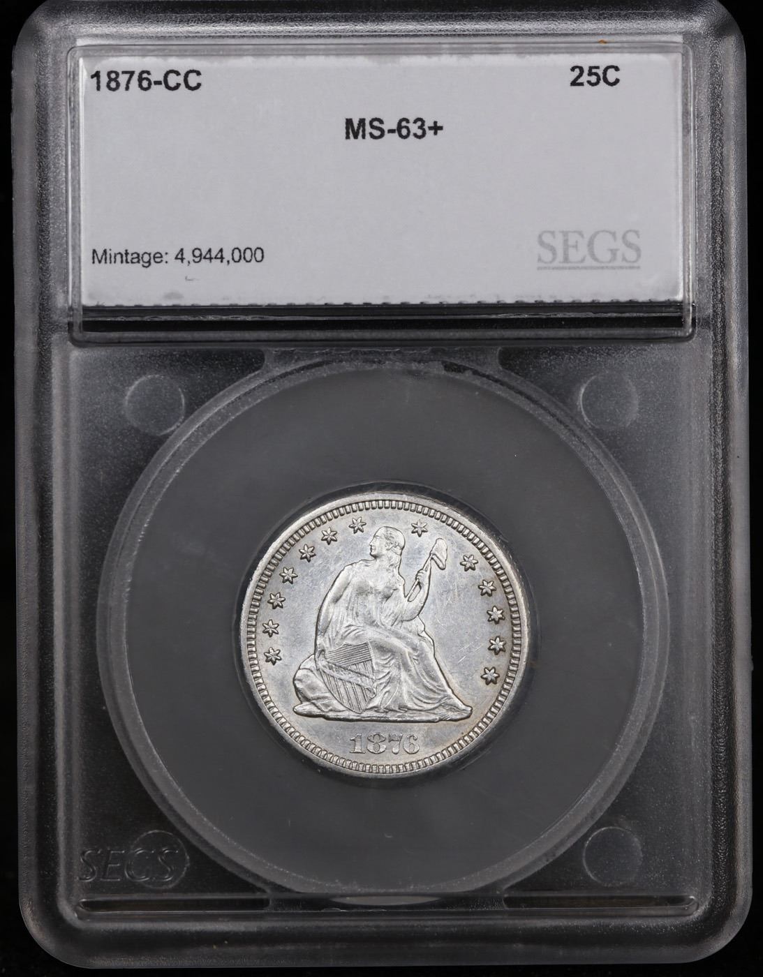 ***Auction Highlight*** 1876-cc Seated Liberty Quarter 25c Graded ms63+ By SEGS. A Key Date's Pick, Bid to Win, Don't let it get Away Coin