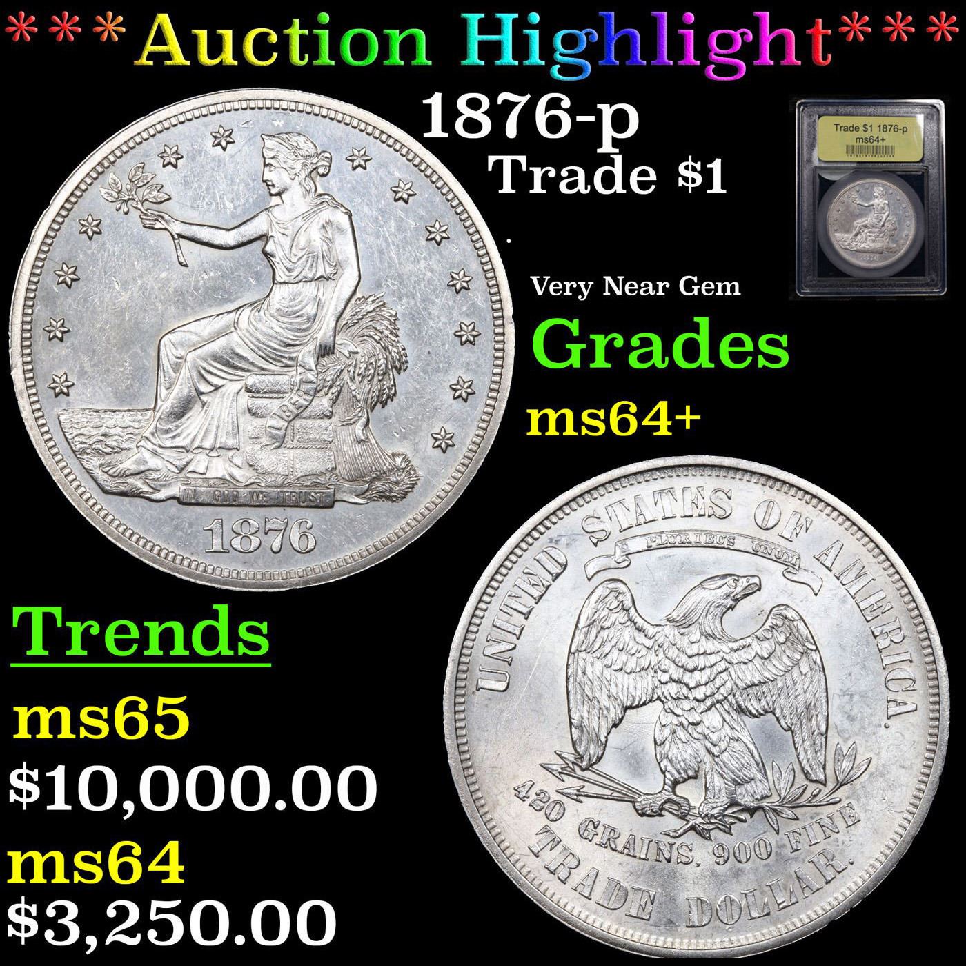 ***Auction Highlight*** 1876-p Trade Dollar $1 Graded Choice+ Unc BY USCG.
