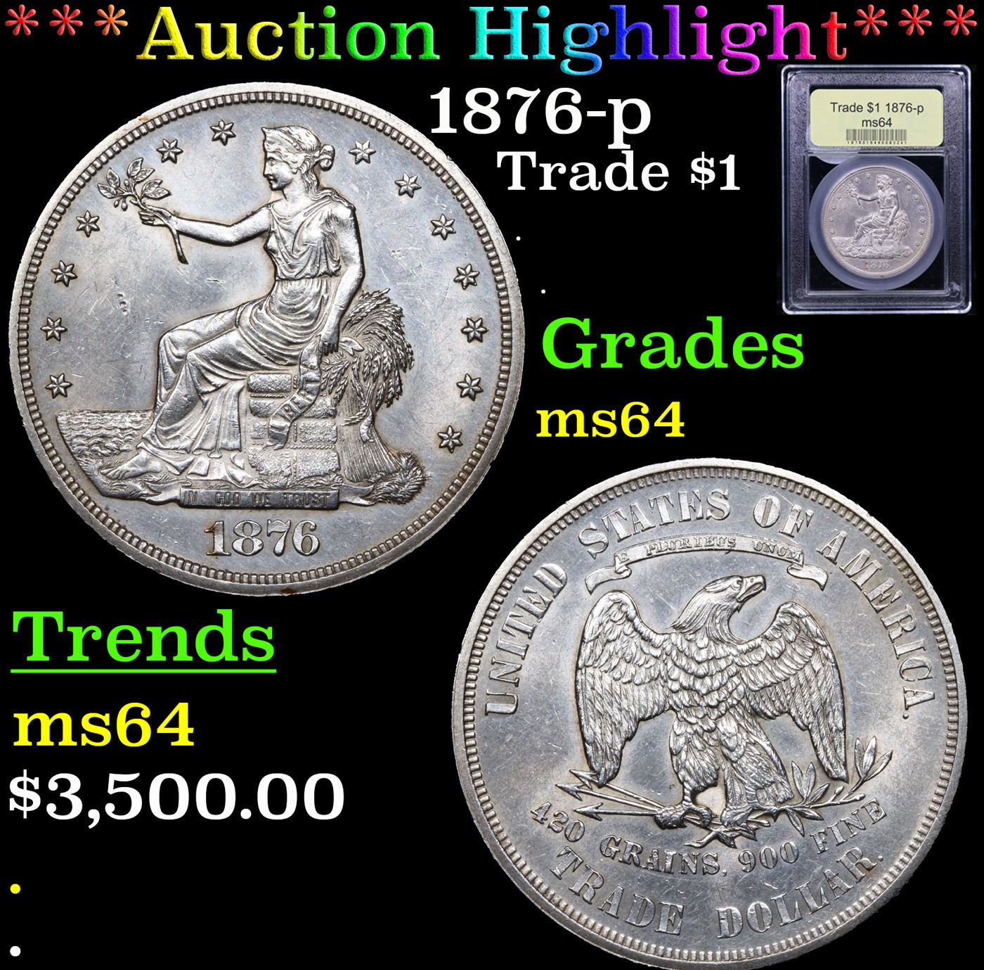 ***Auction Highlight*** 1876-p Trade Dollar $1 Graded Choice Unc By USCG.