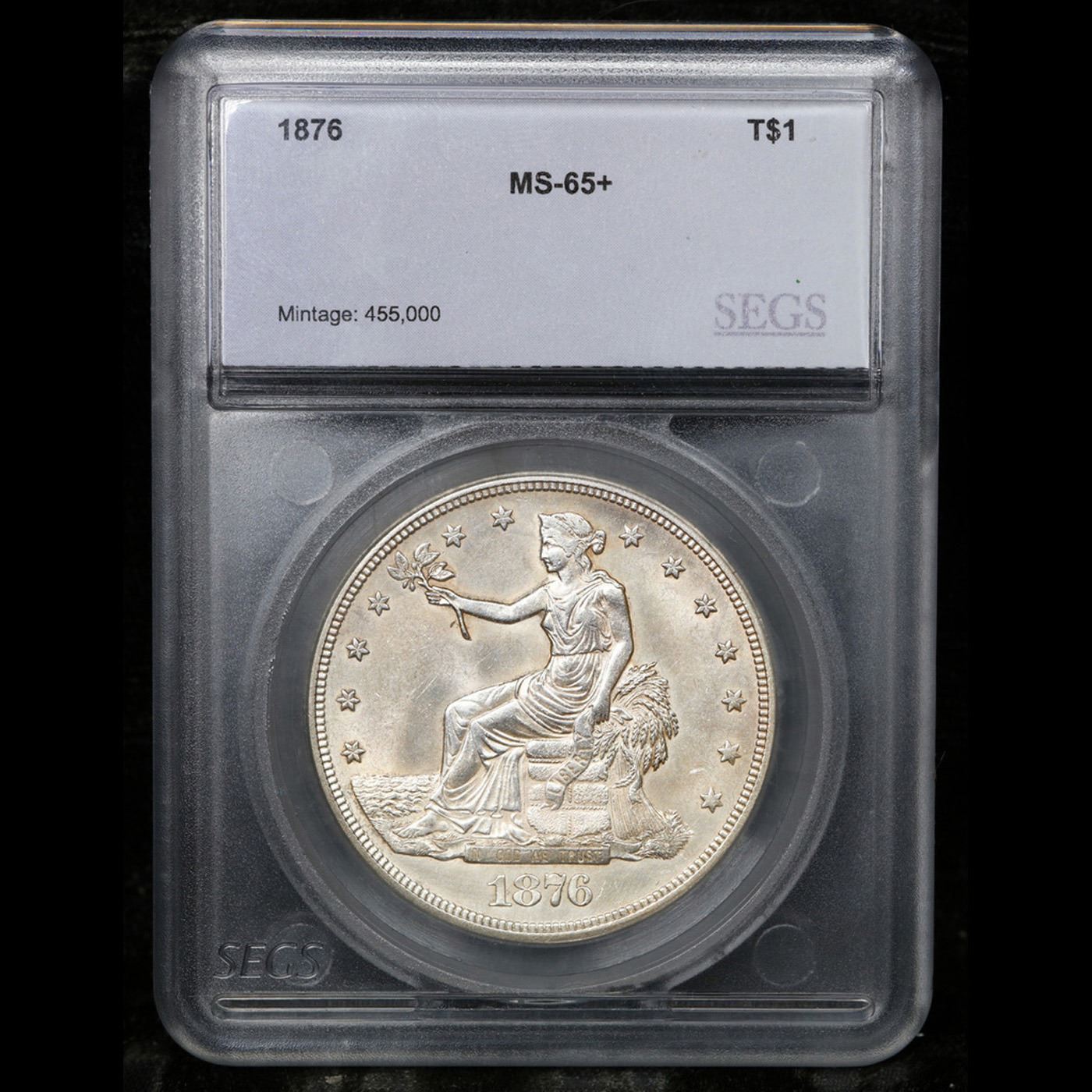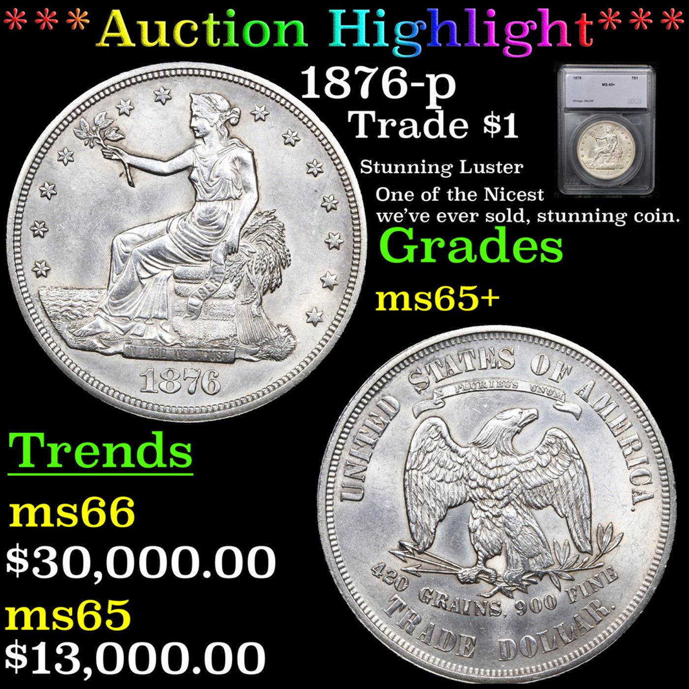 ***Auction Highlight*** 1876-p Trade Dollar 1 Graded ms65+ By SEGS. A Corey's Pick, Bid to Win, Don't let it get Away, you might not find its equal Coin. I give this coin my highest recommendation