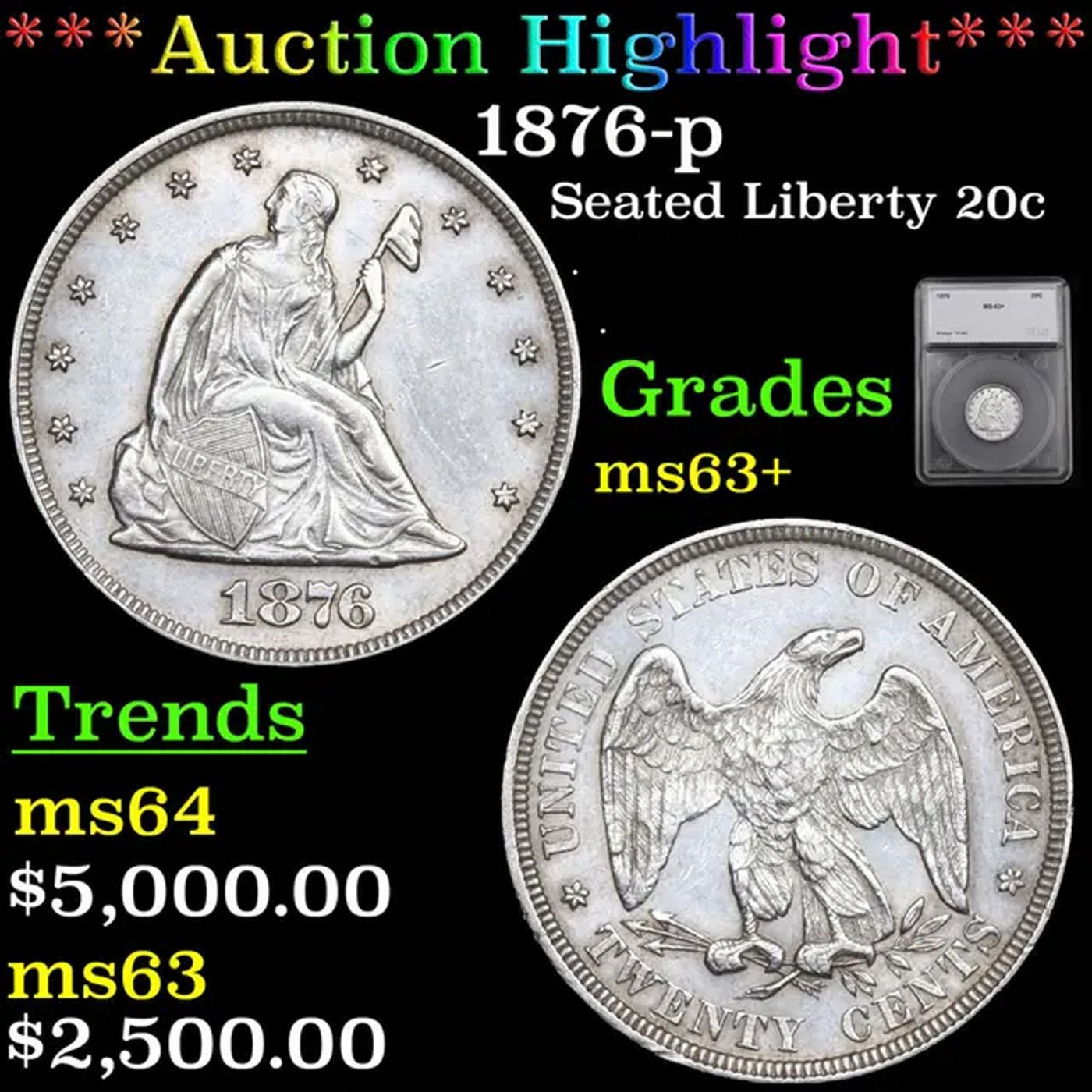 ***Auction Highlight*** 1876-p Twenty Cent Piece 20c Graded ms63+ By SEGS.