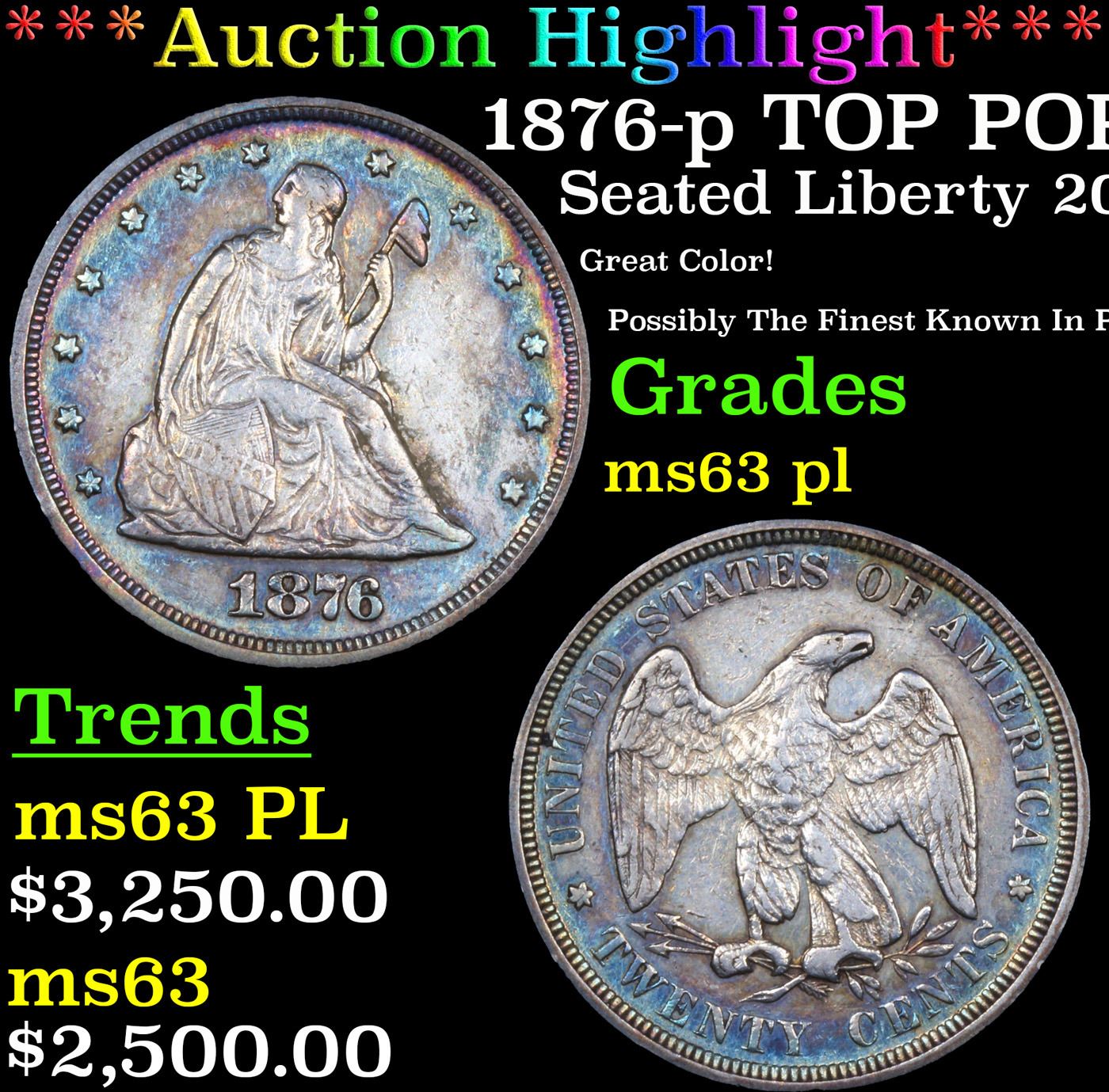 ***Auction Highlight*** 1876-p TOP POP! Twenty Cent Piece 20c Graded ms63 pl By SEGS. A Key Date's Pick, Bid to Win, Don't let it get Away, you might not find its equal Coin