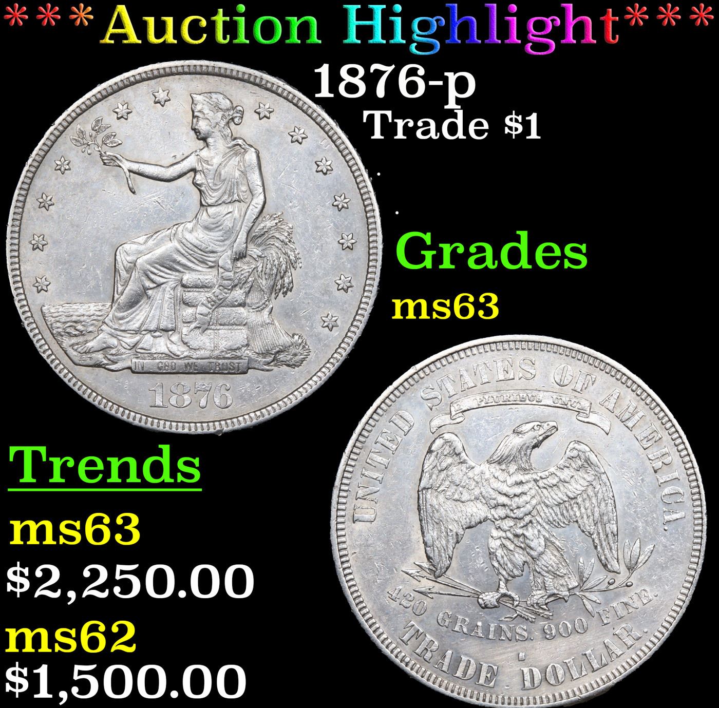 ***Auction Highlight*** 1876-s Trade Dollar $1 Graded Select Unc BY USCG.