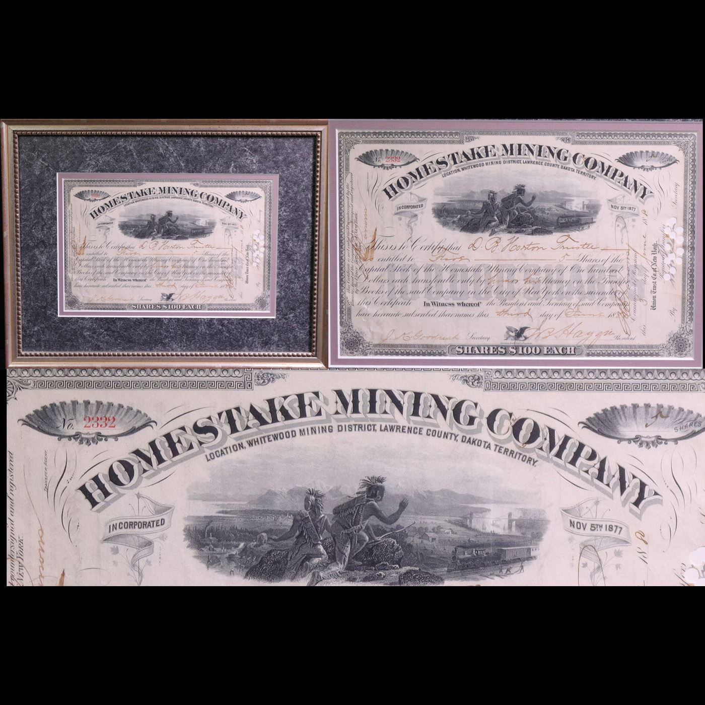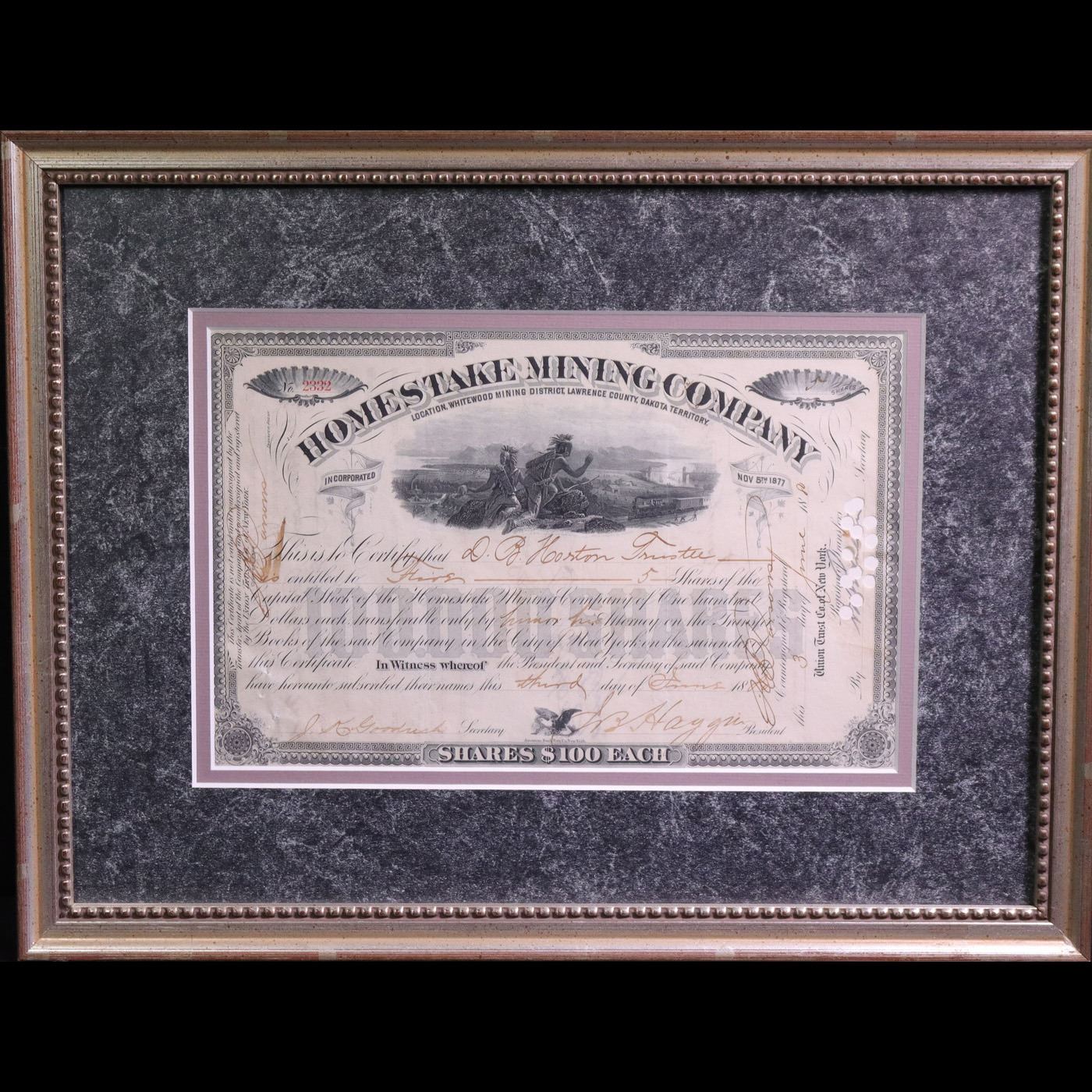 ***Auction Highlight*** 1877 Home Stake Mining Company Stock Certificate Professionally Mounted & Framed. The Cost Of Mounting And Framing This Alone is over $100. A Corey's Pick, Bid to Win Coin