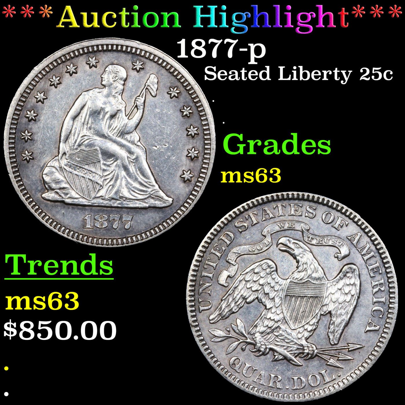***Auction Highlight*** 1877-p Seated Liberty Quarter 25c Graded Select Unc By USCG (fc)
