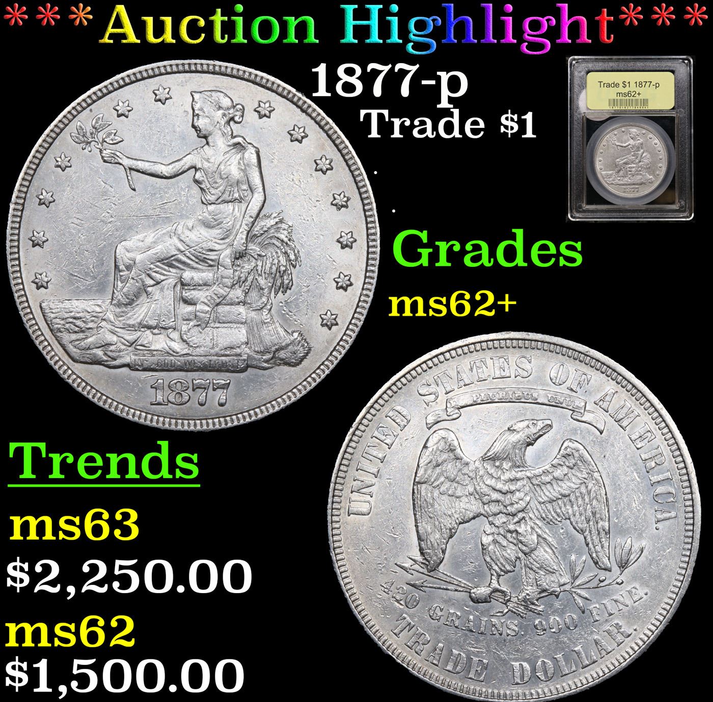 ***Auction Highlight*** 1877-p Trade Dollar $1 Graded Select Unc BY USCG.