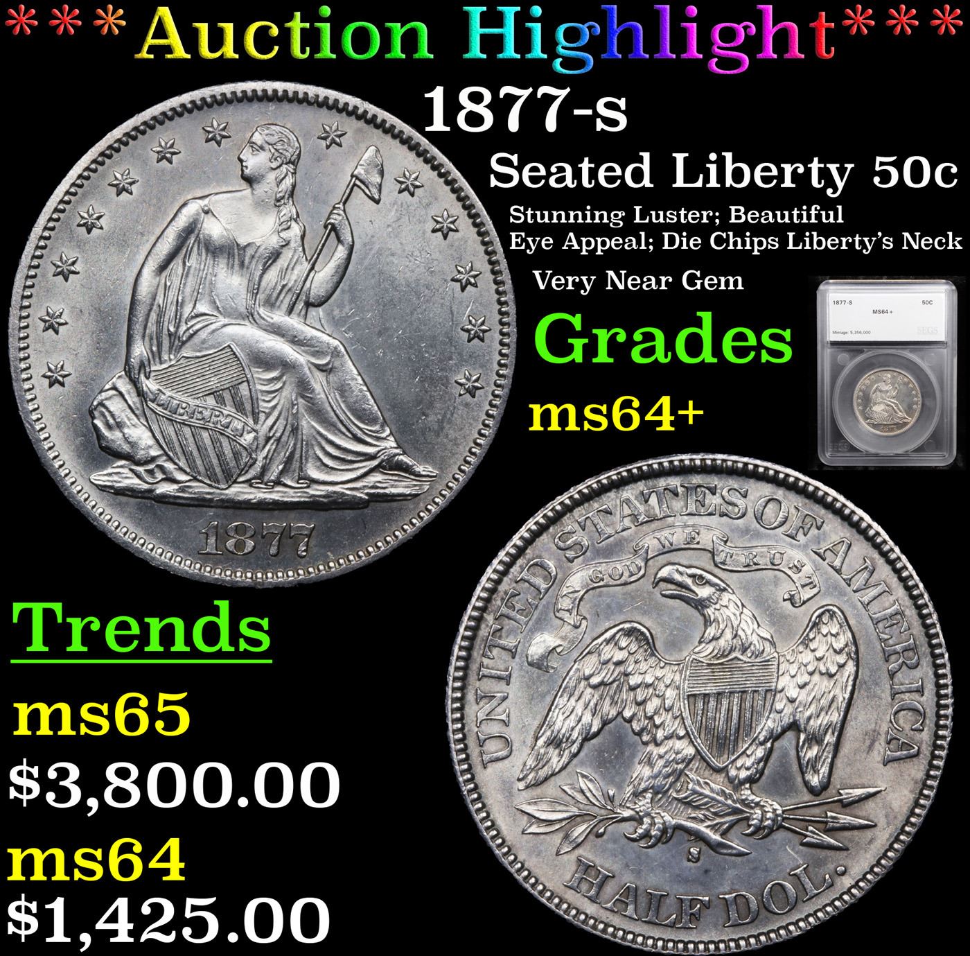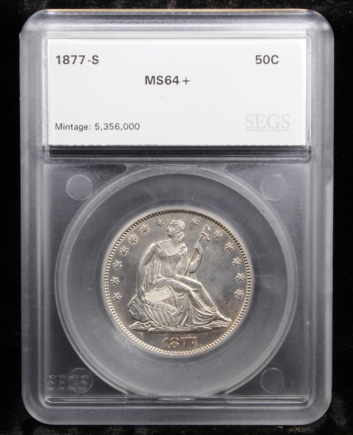 ***Auction Highlight*** 1877-s Seated Half Dollar 50c Graded ms64+ By SEGS. A Corey's Pick, Bid to Win, Don't let it get Away Coin