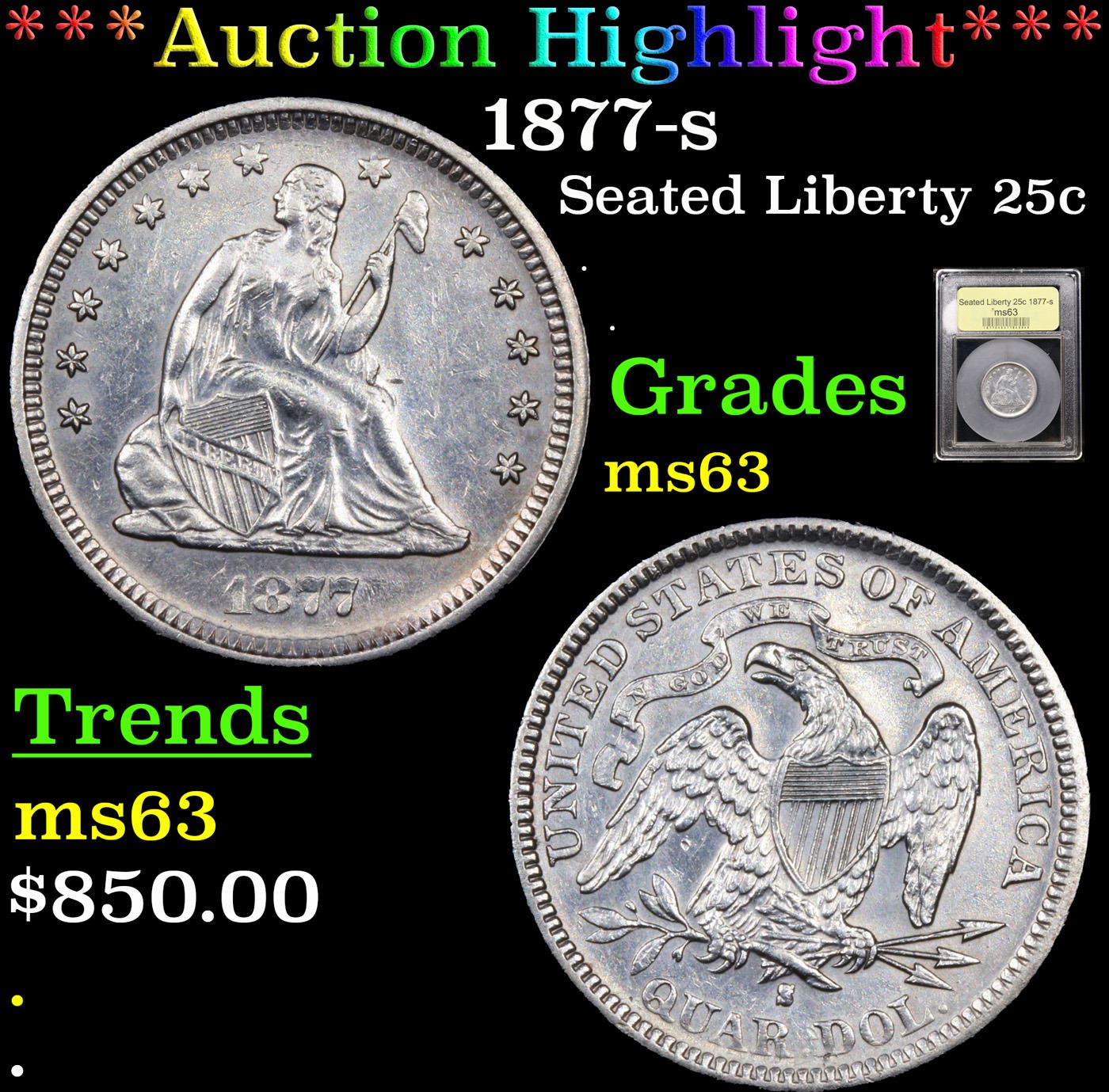 ***Auction Highlight*** 1877-s Seated Liberty Quarter 25c Graded Select Unc BY USCG.