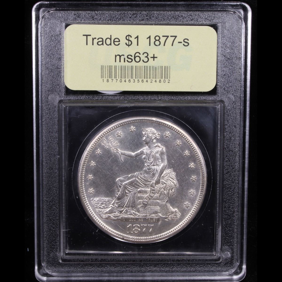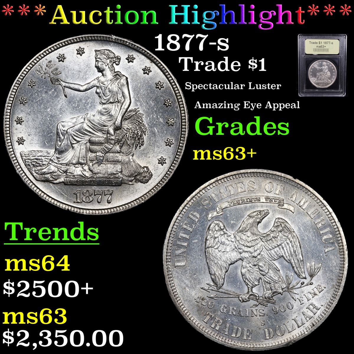 ***Auction Highlight*** 1877-s Spectacular Luster Amazing Eye Appeal Trade Dollar $1 Graded Select+ Unc By USCG. A Corey's Pick, Bid to Win, Don't let it get Away Coin