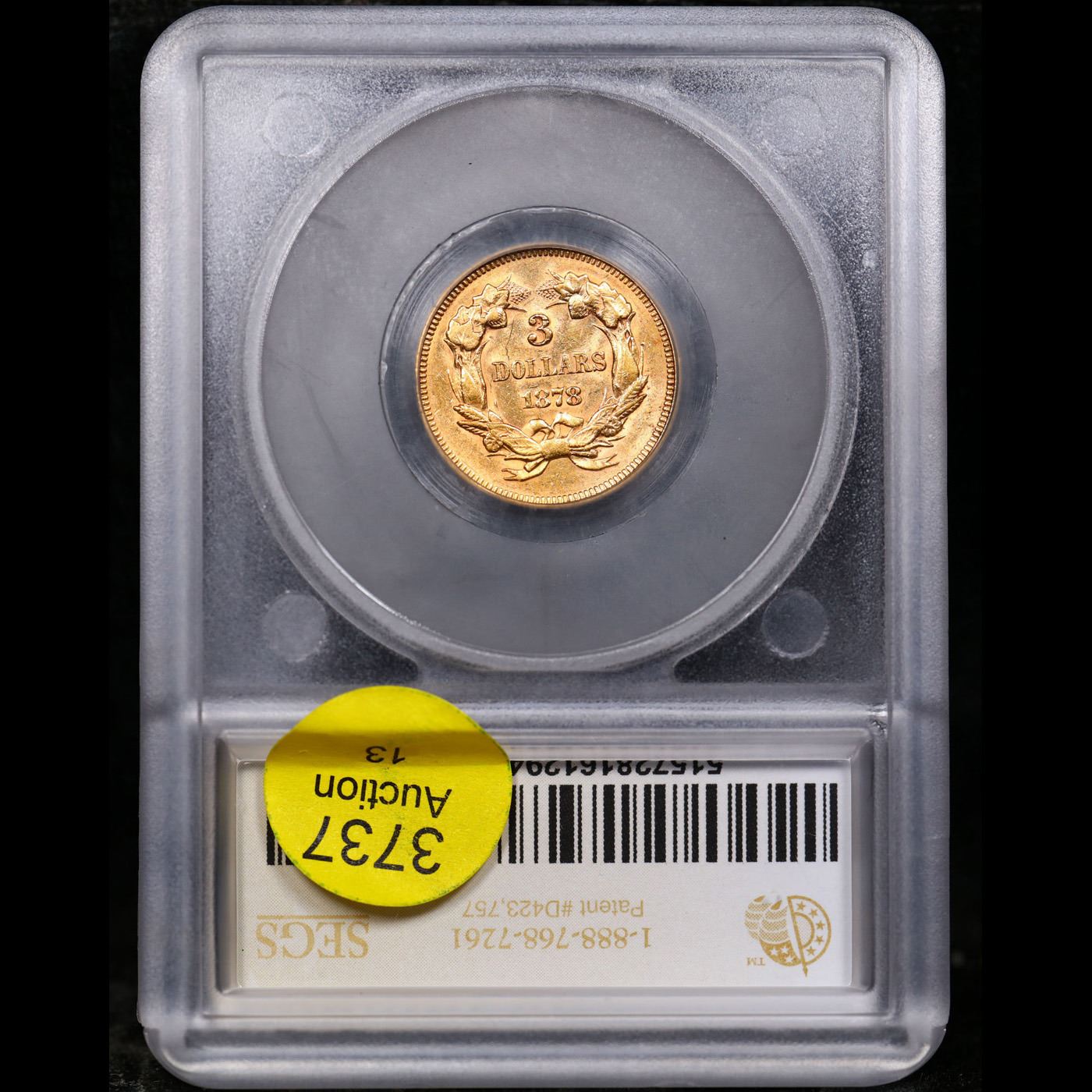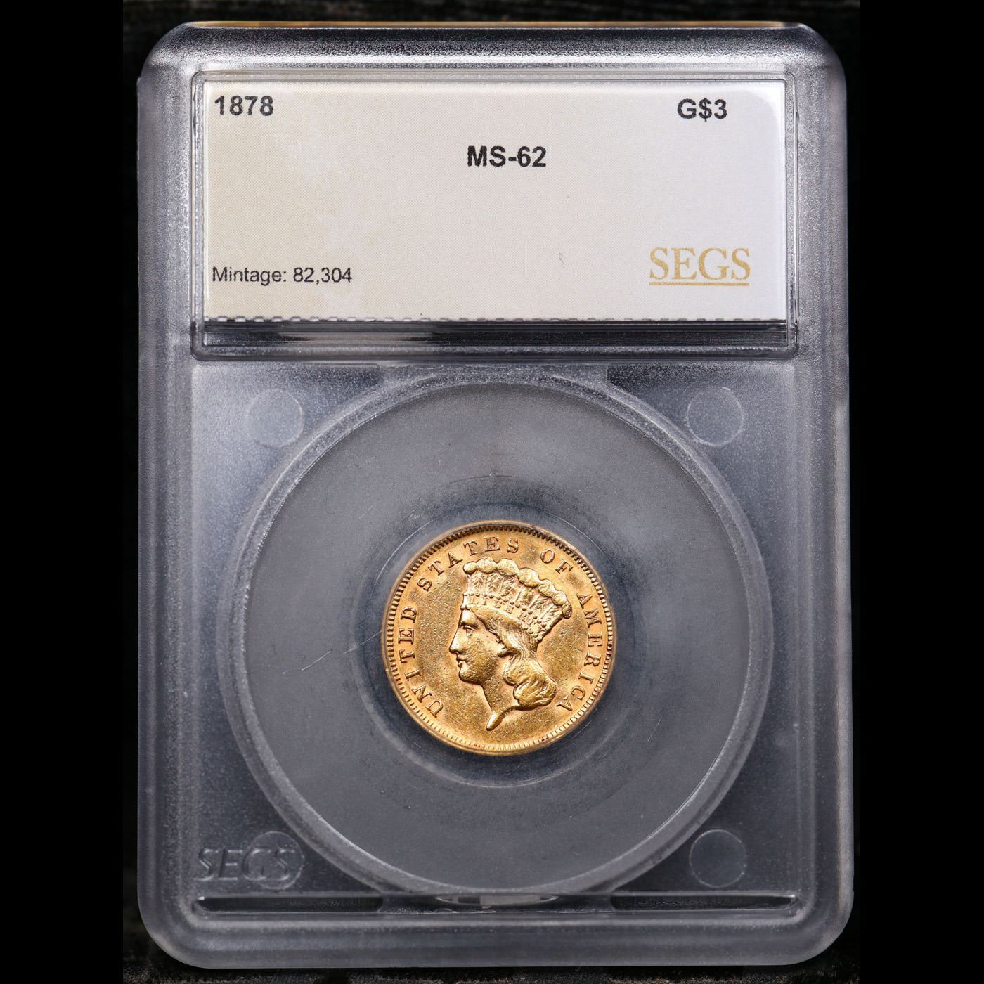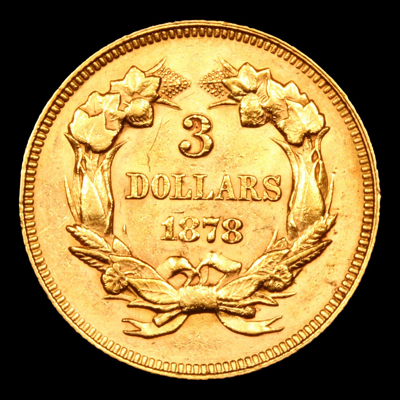 ***Auction Highlight*** 1878 Three Dollar Gold 3 Graded ms62 BY SEGS.