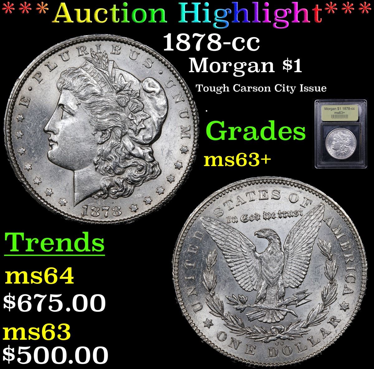 ***Auction Highlight*** 1878-cc Morgan Dollar $1 Graded Select+ Unc By USCG. Tough Carson City Issue A Corey's Pick, Bid to Win Coin