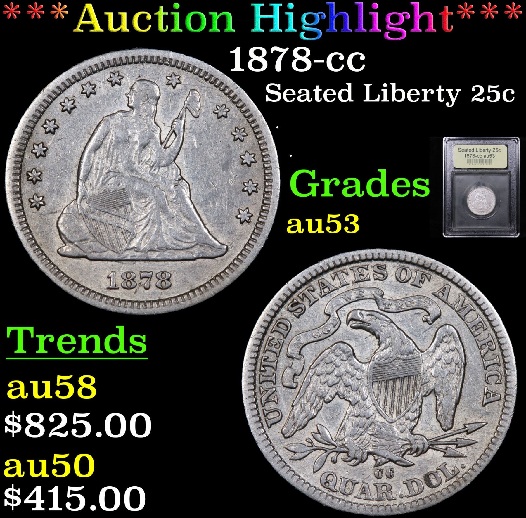 ***Auction Highlight*** 1878-cc . . Seated Liberty Quarter 25c Graded Select AU By USCG.