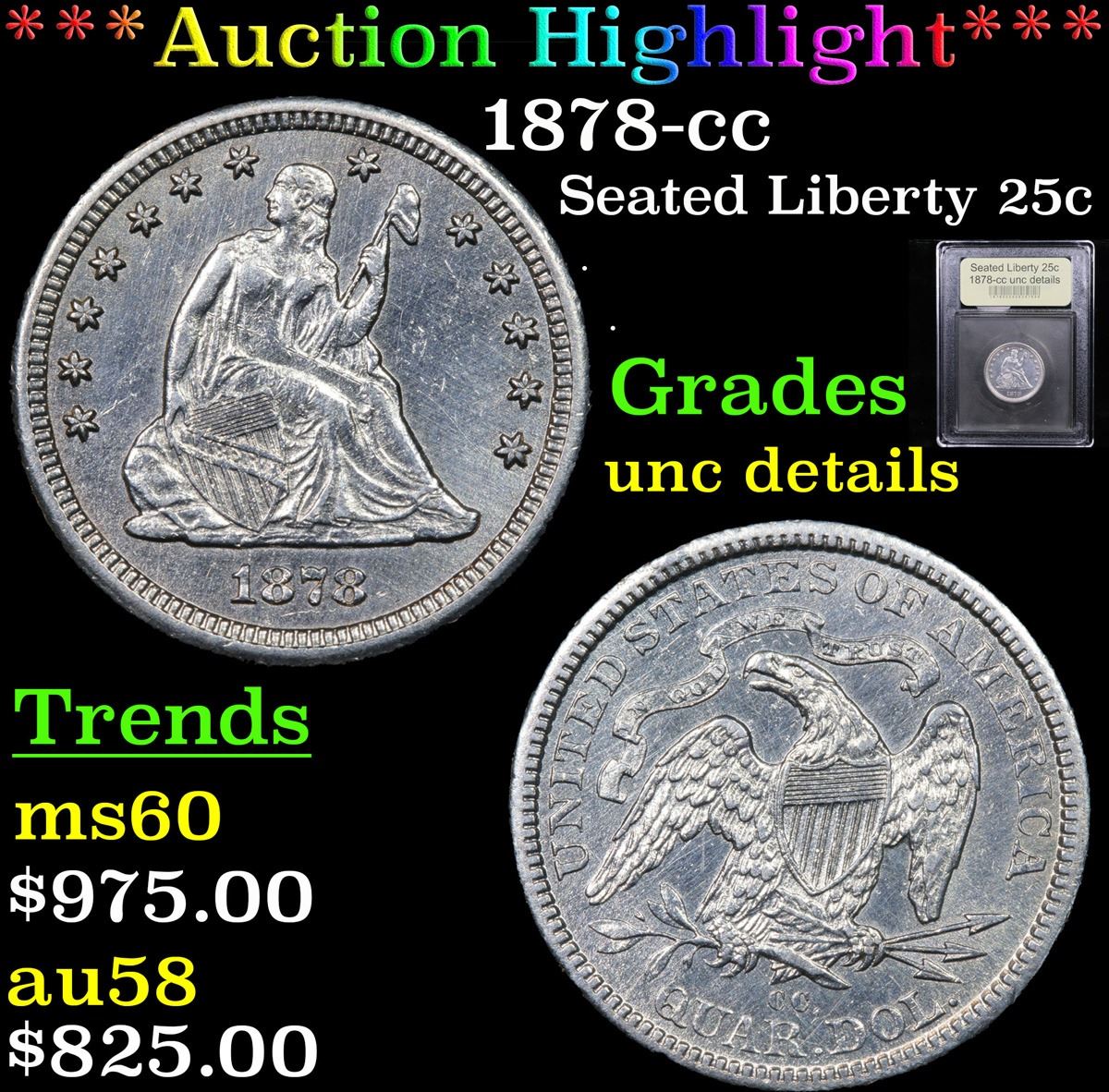 ***Auction Highlight*** 1878-cc Seated Liberty Quarter 25c Graded Unc Details By USCG (fc)