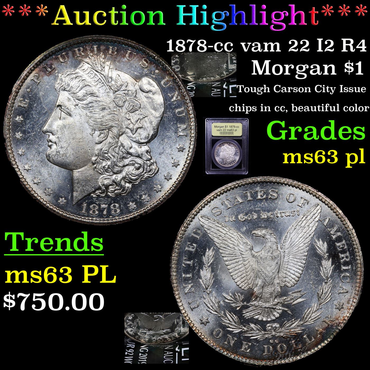 ***Auction Highlight*** 1878-cc vam 22 I2 R4 Morgan Dollar $1 Graded Select Unc PL By USCG (fc)