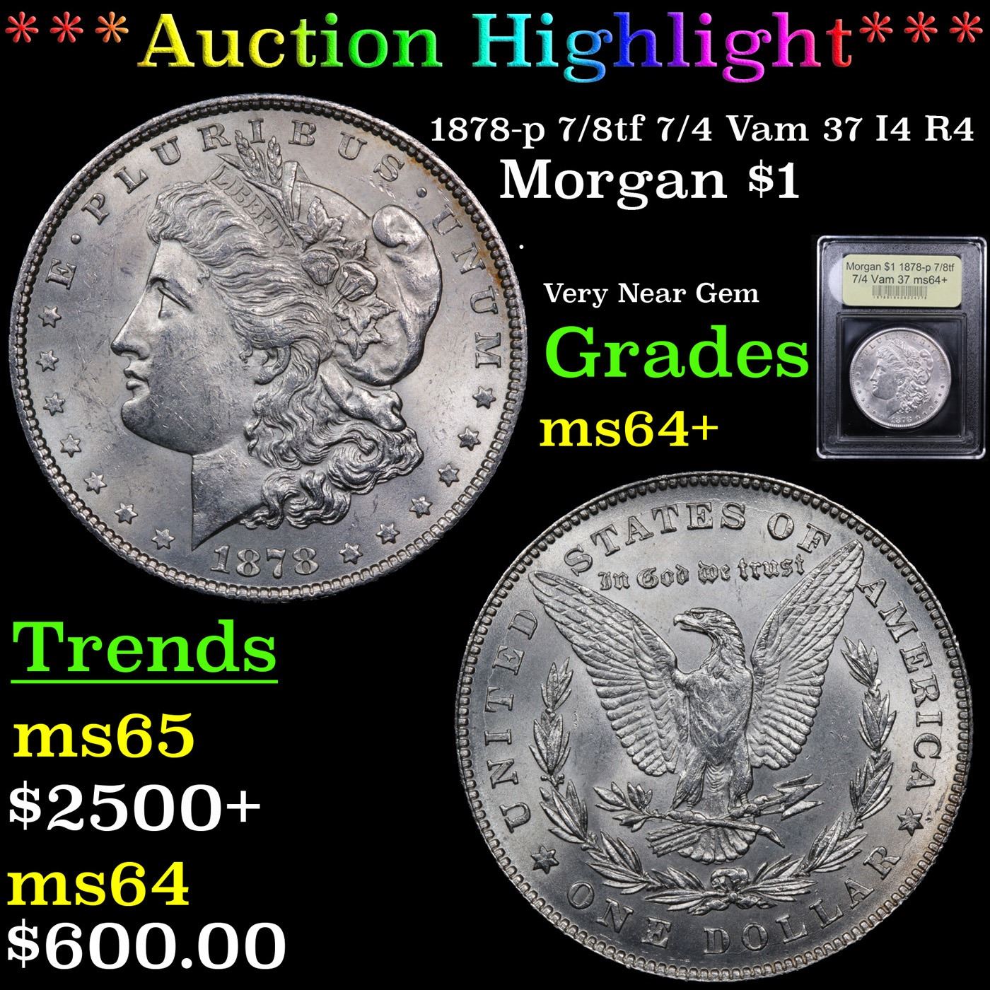 ***Auction Highlight*** 1878-p 7/8tf 7/4 Vam 37 I4 R4 Morgan Dollar $1 Graded Choice+ Unc By USCG (