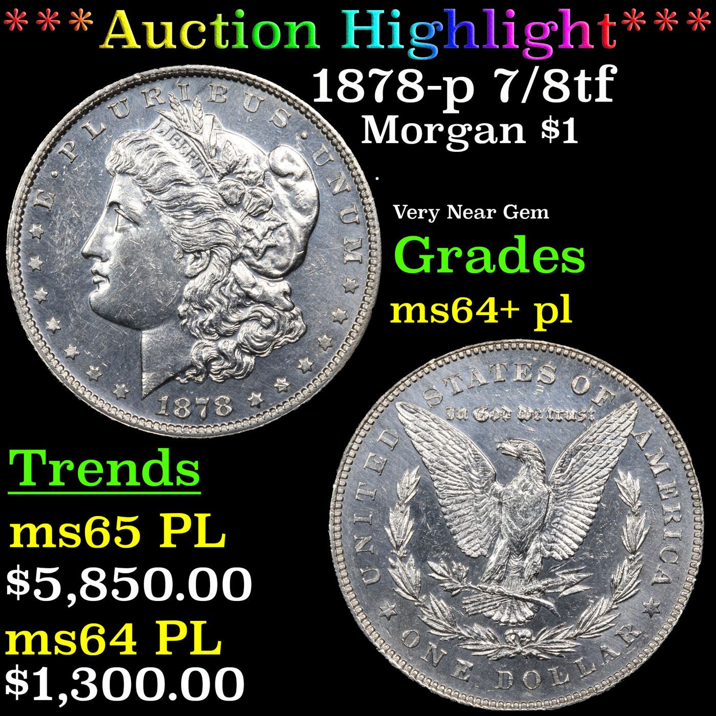 ***Auction Highlight*** 1878-p 7/8tf Morgan Dollar $1 Graded Choice Unc+ PL BY USCG.
