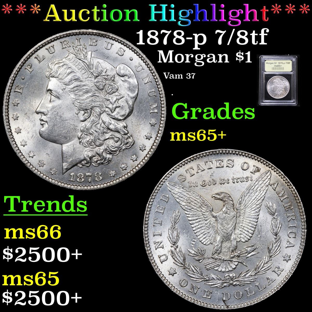 ***Auction Highlight*** 1878-p 7/8tf Vam 37 . Morgan Dollar $1 Graded GEM+ Unc By USCG. A Corey's Pick, Bid to Win, Don't let it get Away, you might not find its equal Coin. I give this coin my highest recommendation