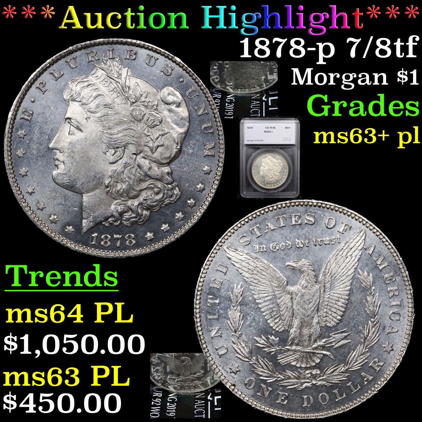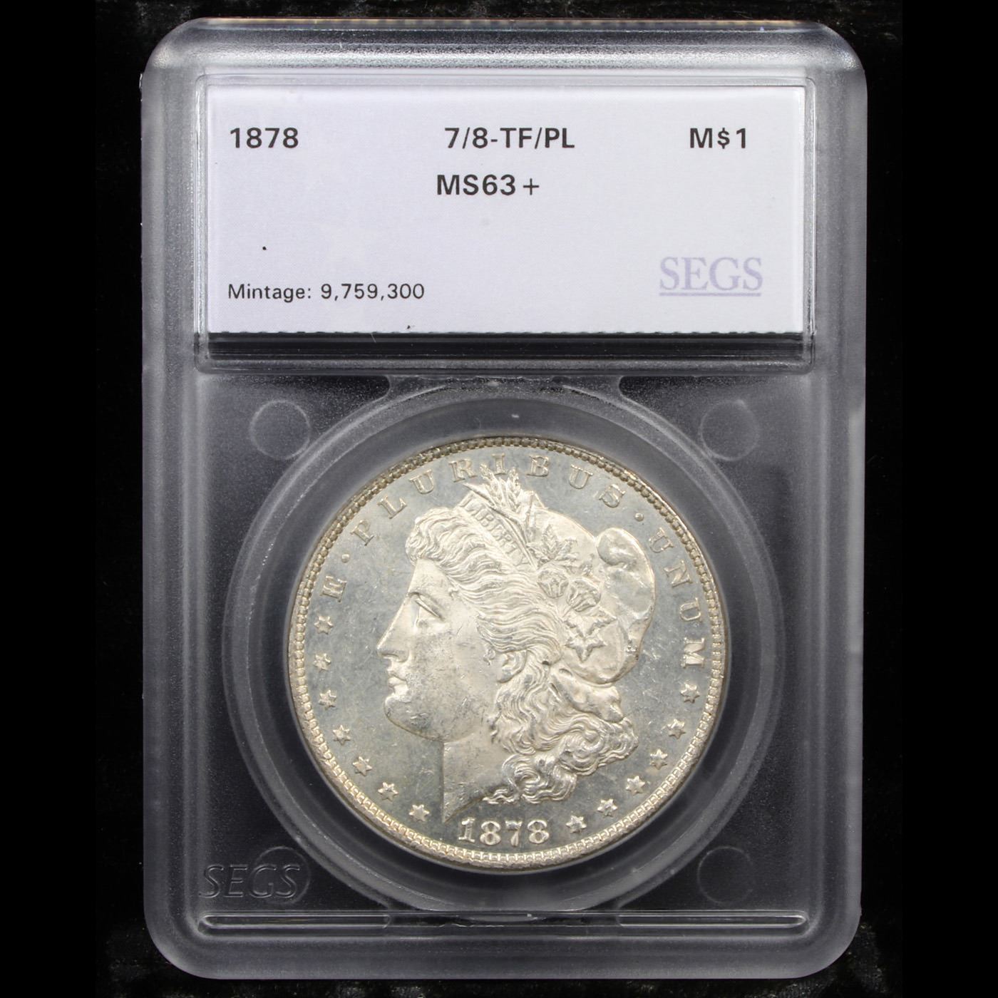 ***Auction Highlight*** 1878-p 7/8tf Morgan Dollar $1 Graded ms63+ pl By SEGS. A Corey's Pick, Bid to Win Coin