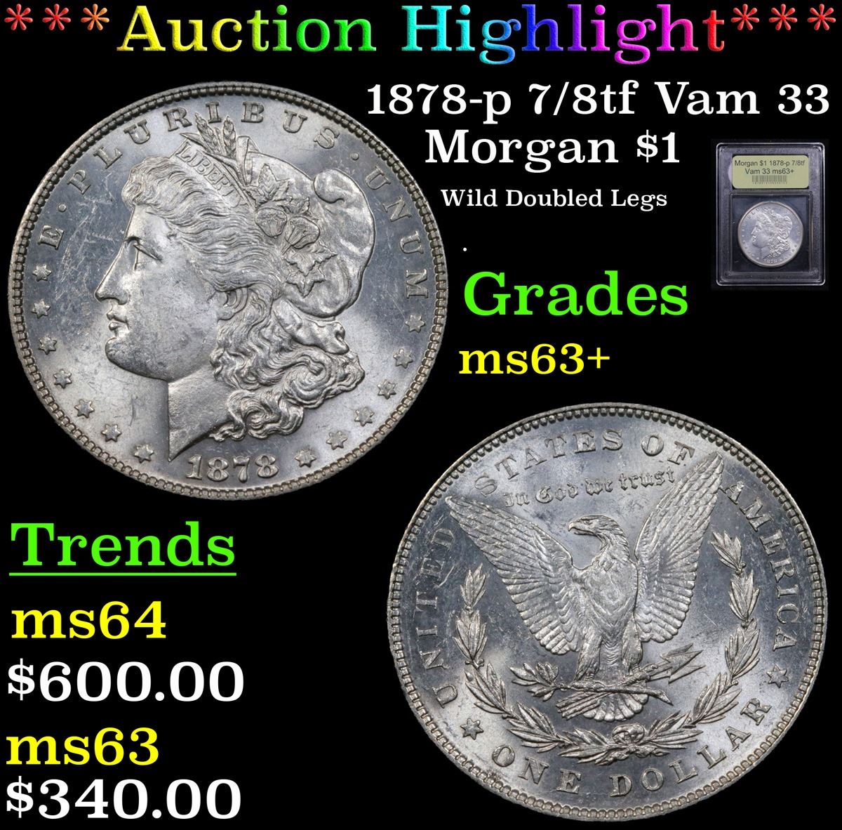 ***Auction Highlight*** 1878-p 7/8tf Vam 33 Morgan Dollar $1 Graded Select+ Unc By USCG. A Corey's Pick, Bid to Win Coin