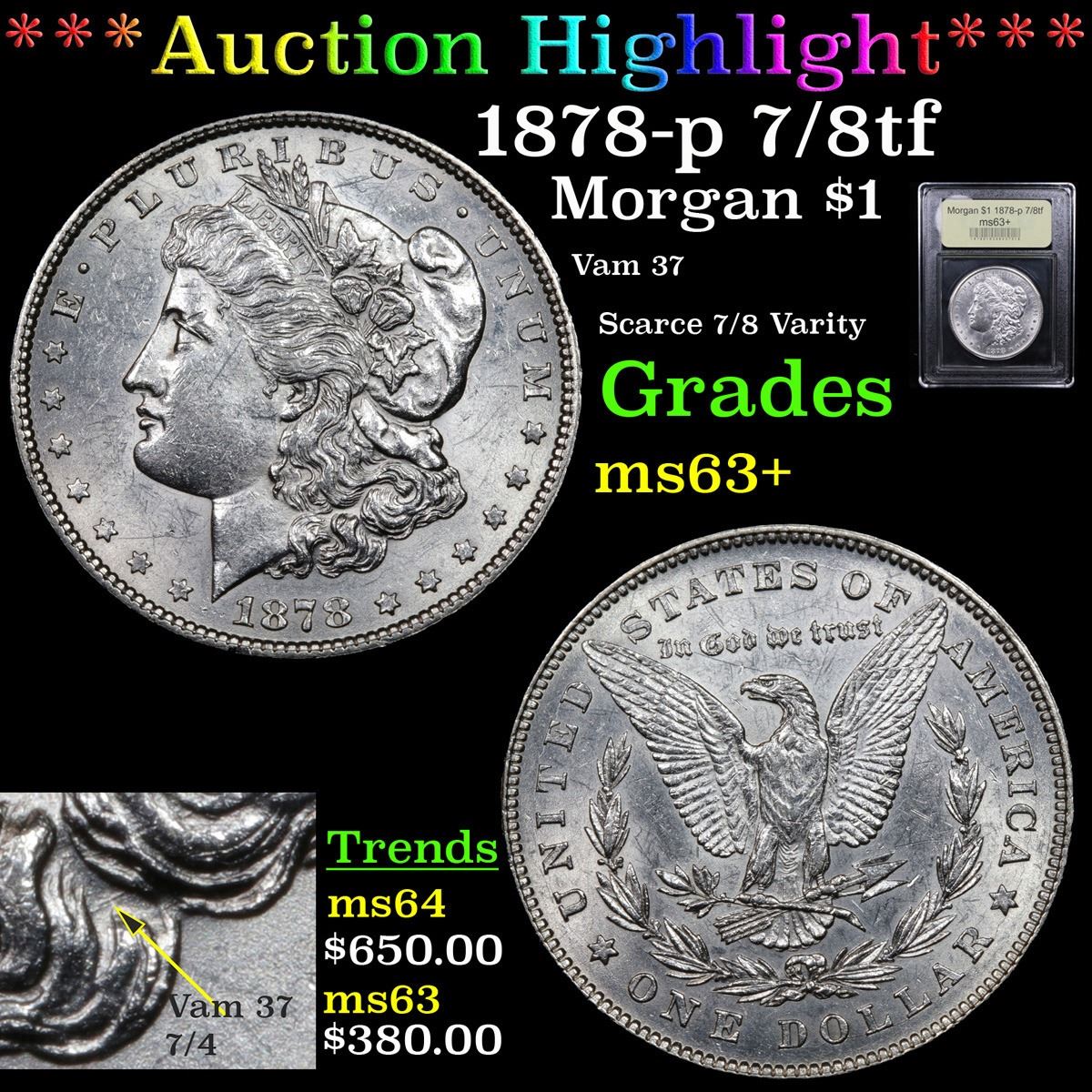 ***Auction Highlight*** 1878-p 7/8tf Vam 37 Morgan Dollar $1 Graded Select+ Unc By USCG (fc)