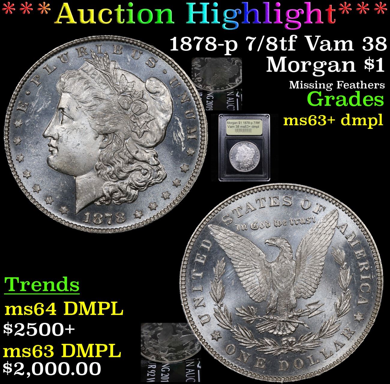 ***Auction Highlight*** 1878-p 7/8tf Vam 38 Missing Feathers . Morgan Dollar $1 Graded Select Unc+ DMPL By USCG. A Corey's Pick, Bid to Win, Don't let it get Away Coin