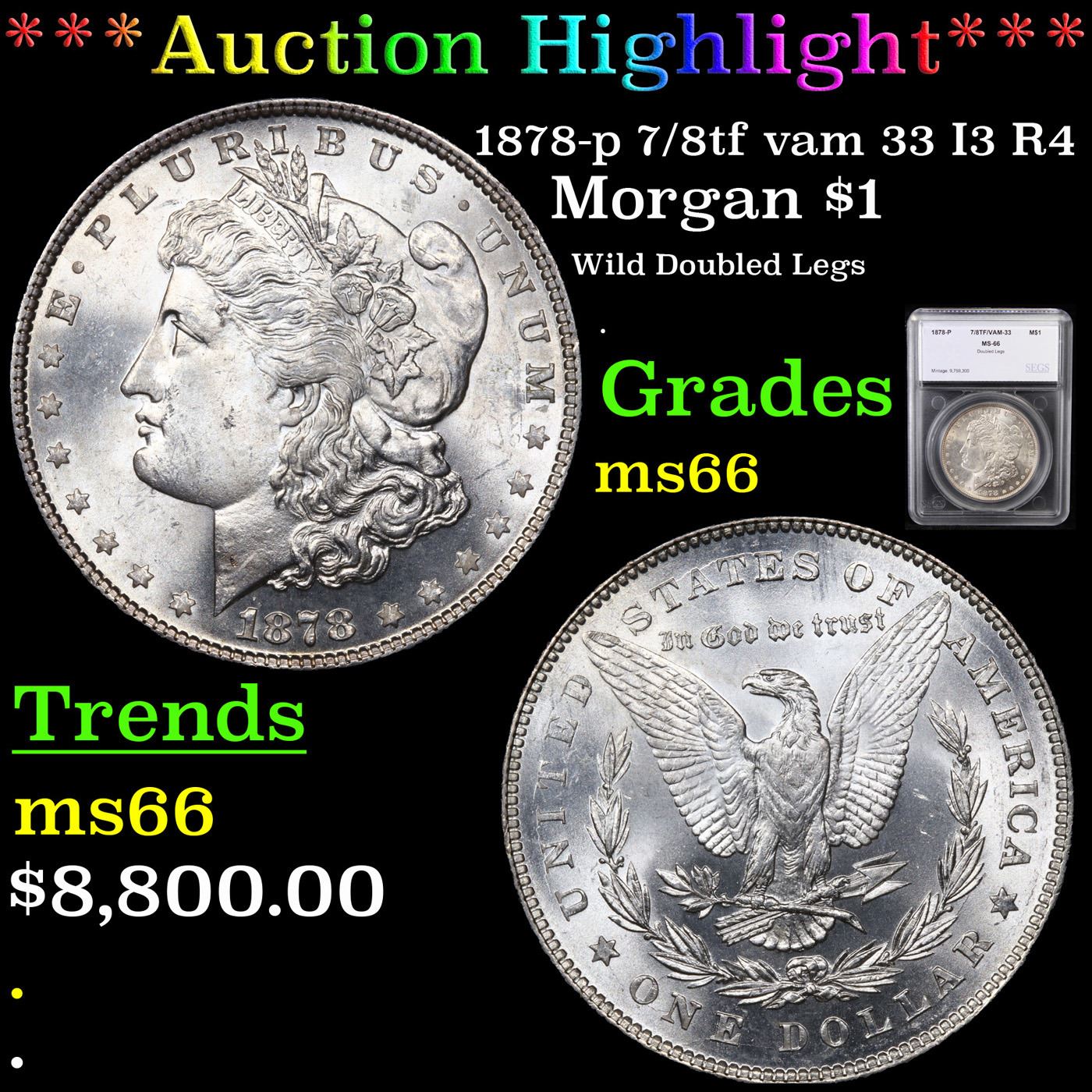 ***Auction Highlight*** 1878-p 7/8tf vam 33 I3 R4 Morgan Dollar $1 Graded ms66 By SEGS (fc)