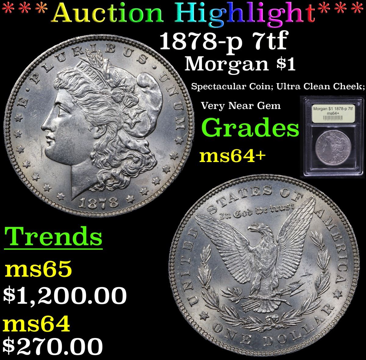 ***Auction Highlight*** 1878-p 7tf Morgan Dollar $1 Graded Choice+ Unc By USCG. A Corey's Pick, Bid to Win Coin