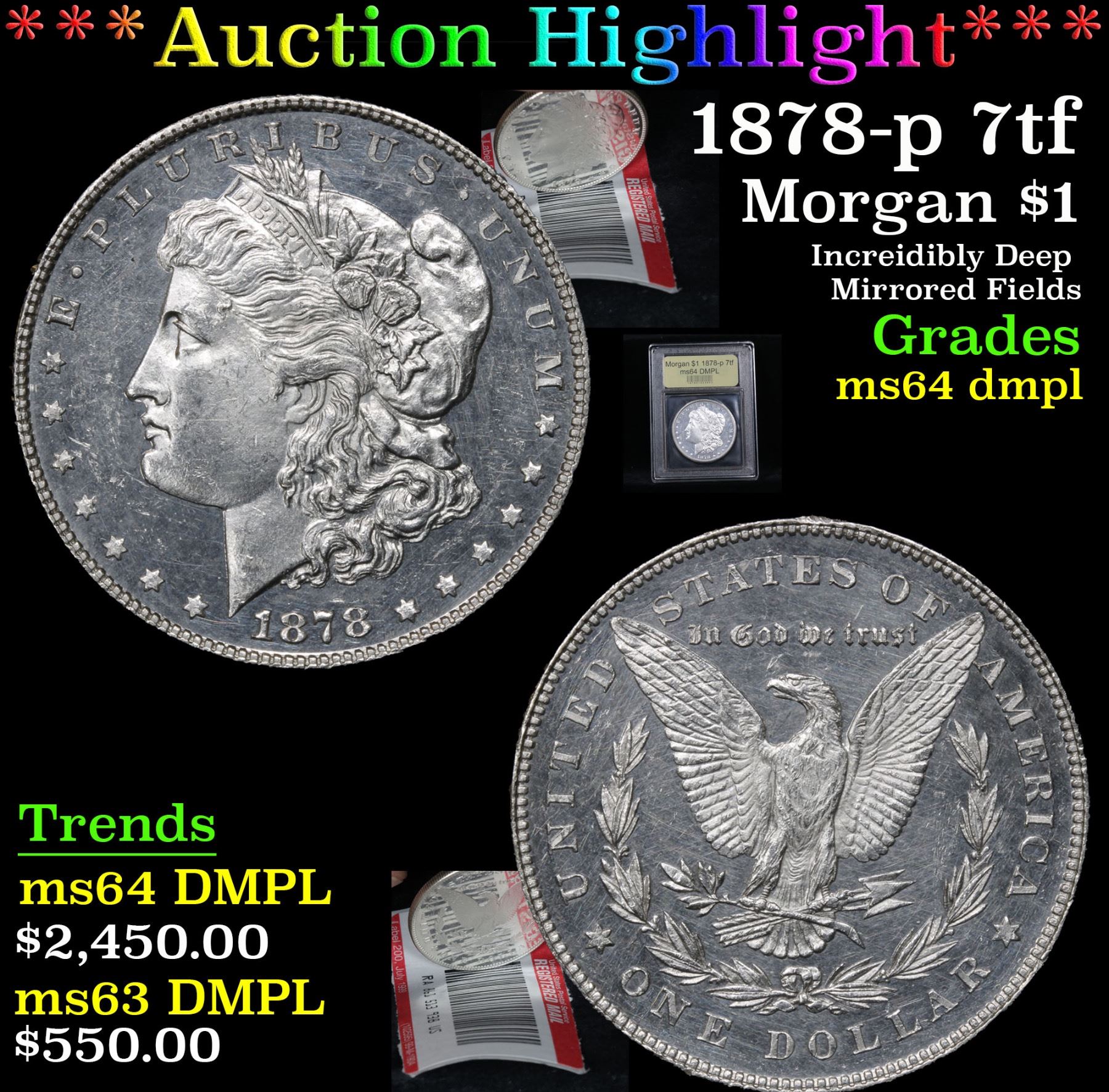 ***Auction Highlight*** 1878-p 7tf Increidibly Deep Mirrored Fields . Morgan Dollar $1 Graded Choice Unc DMPL By USCG. A Corey's Pick, Bid to Win Coin
